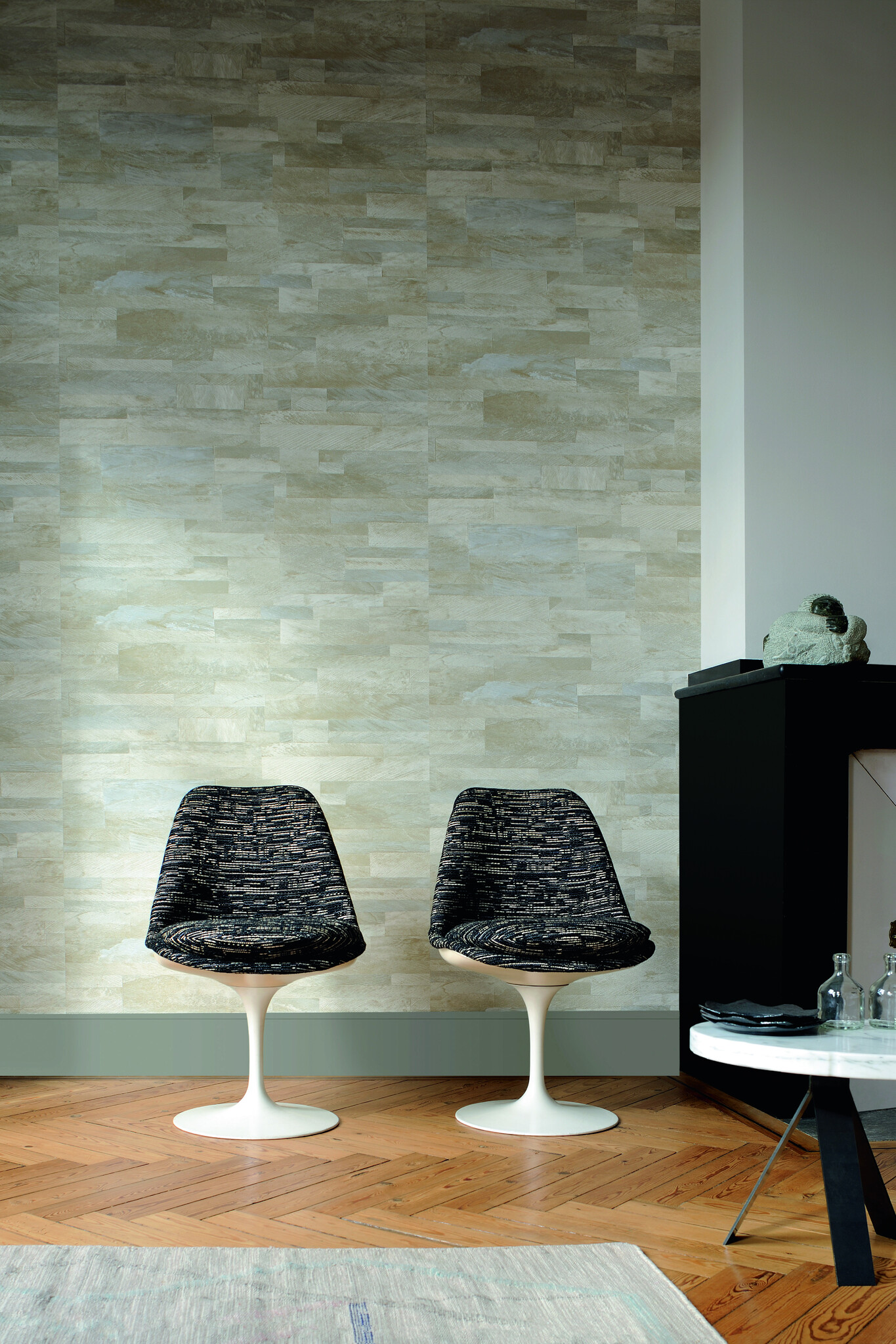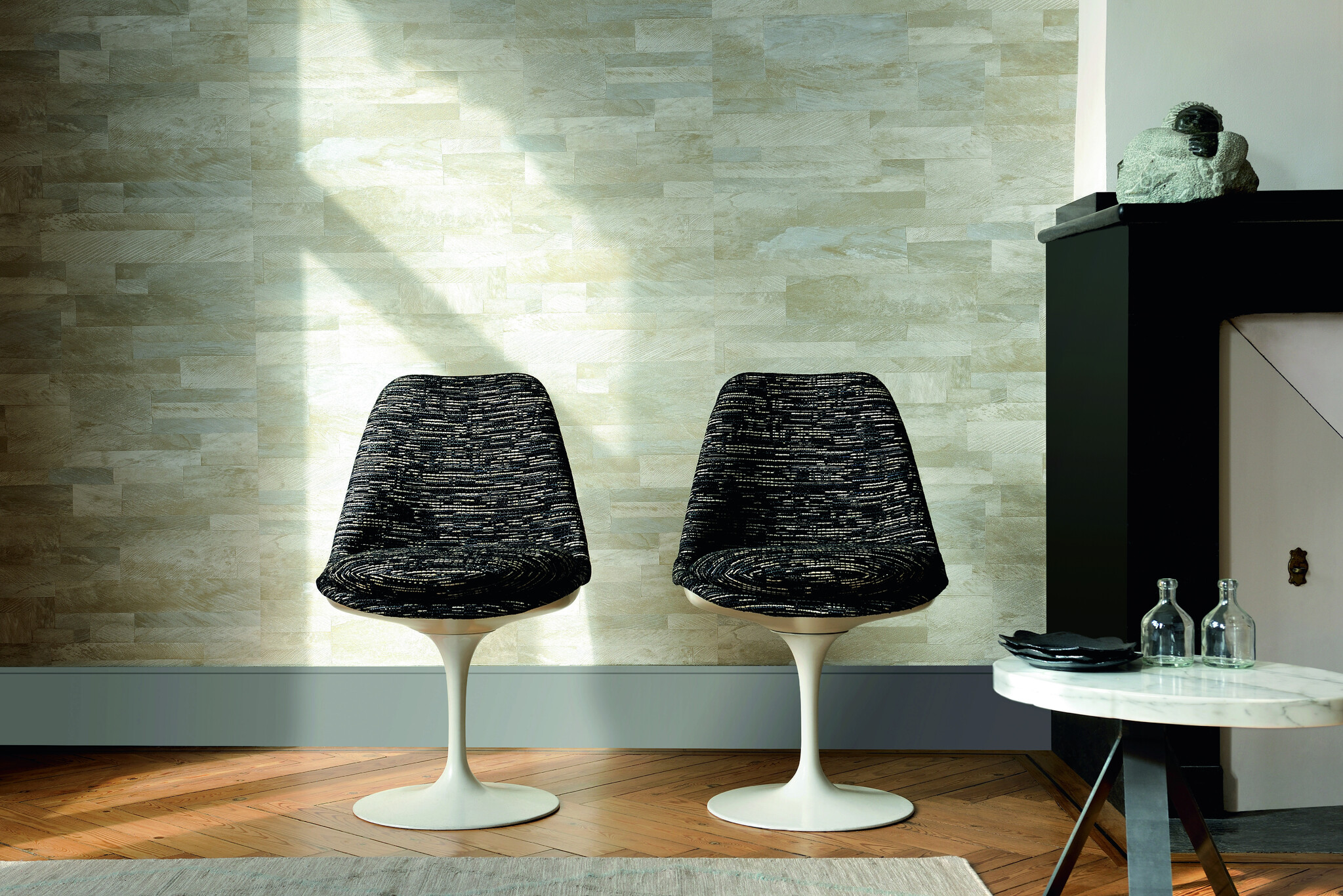 The Elitis wallpaper Pâna is part of the Nomades collection. The idea behind the design is a tessellation, which resembles a patchwork of palm tree wood.