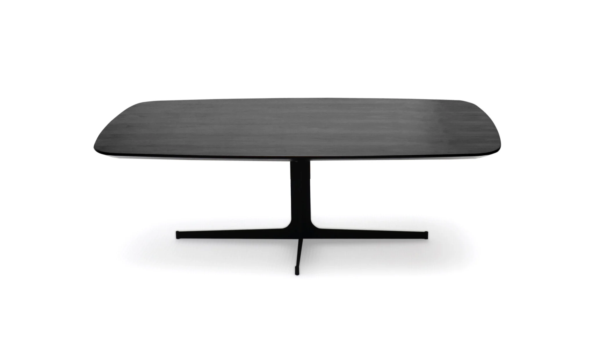 Table with Italian flair and Scandinavian minimalism. Wood veneer top, steel base. Charcoal finish with premium craftsmanship.