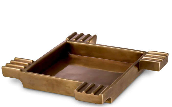 Ashtray Mack Eichholtz - Stylish square ashtray in vintage brass - 17×17×3 cm