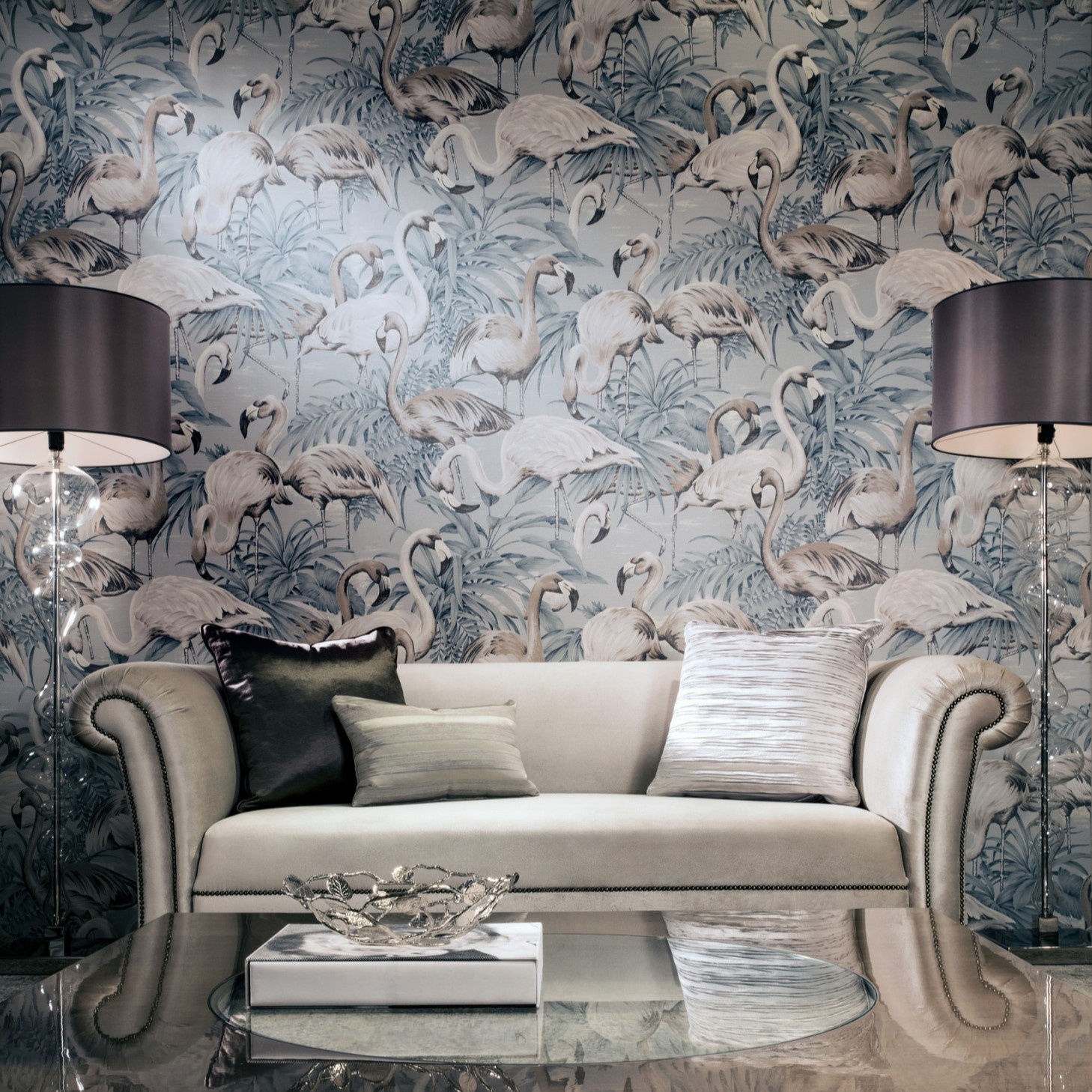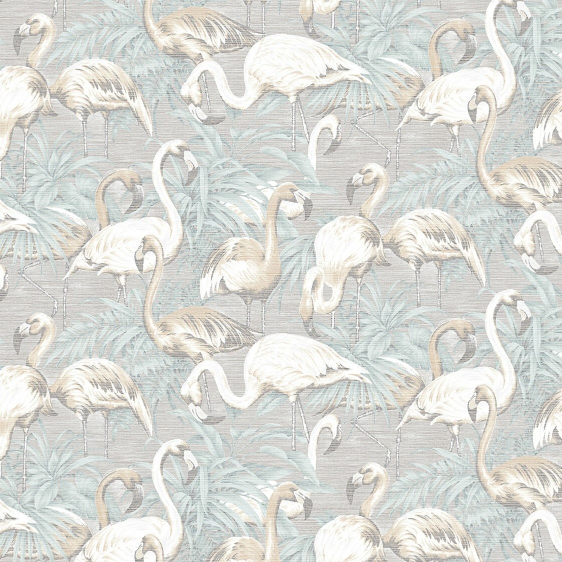 Flamingo is the eye-catcher of the collection, it is your direct ticket to the tropics. The colorful print with flamingos immediately attracts attention, while the tactile structure of woven grass gives the wall covering an extra dimension.