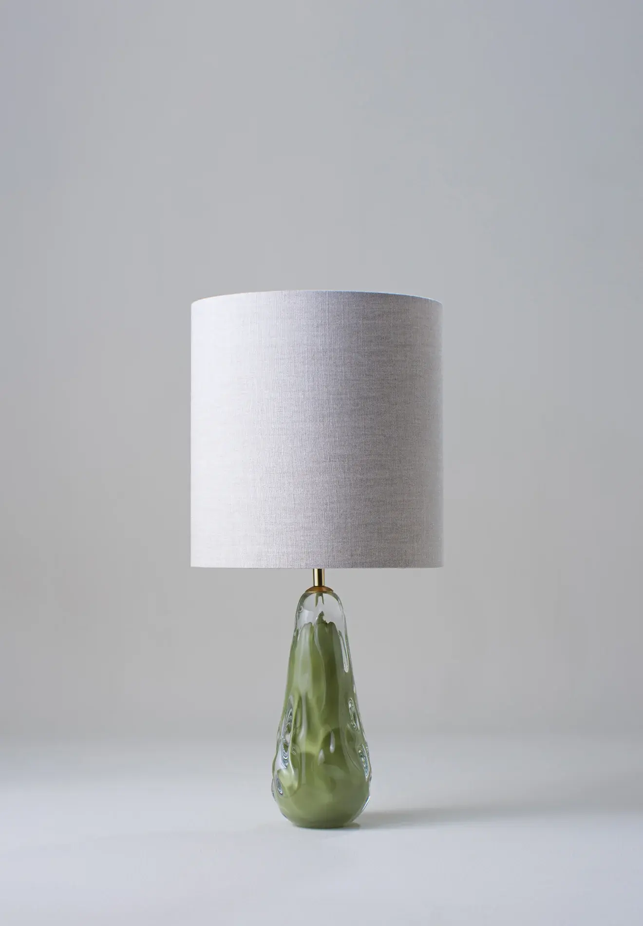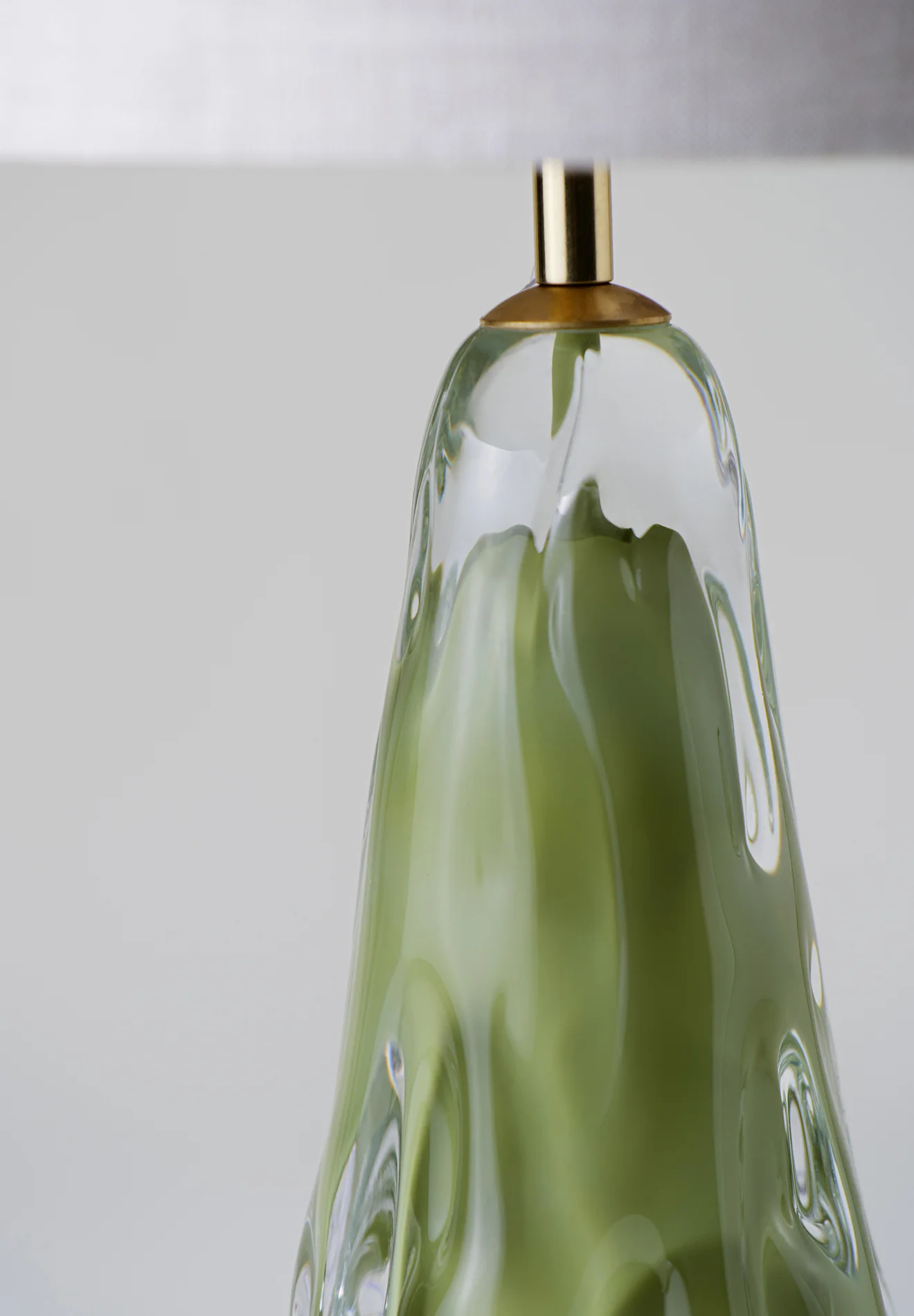 The Porta Romana Large Avocado Lamp: shiny, wavy glass with colored core. A true work of art. Comes without lampshade.