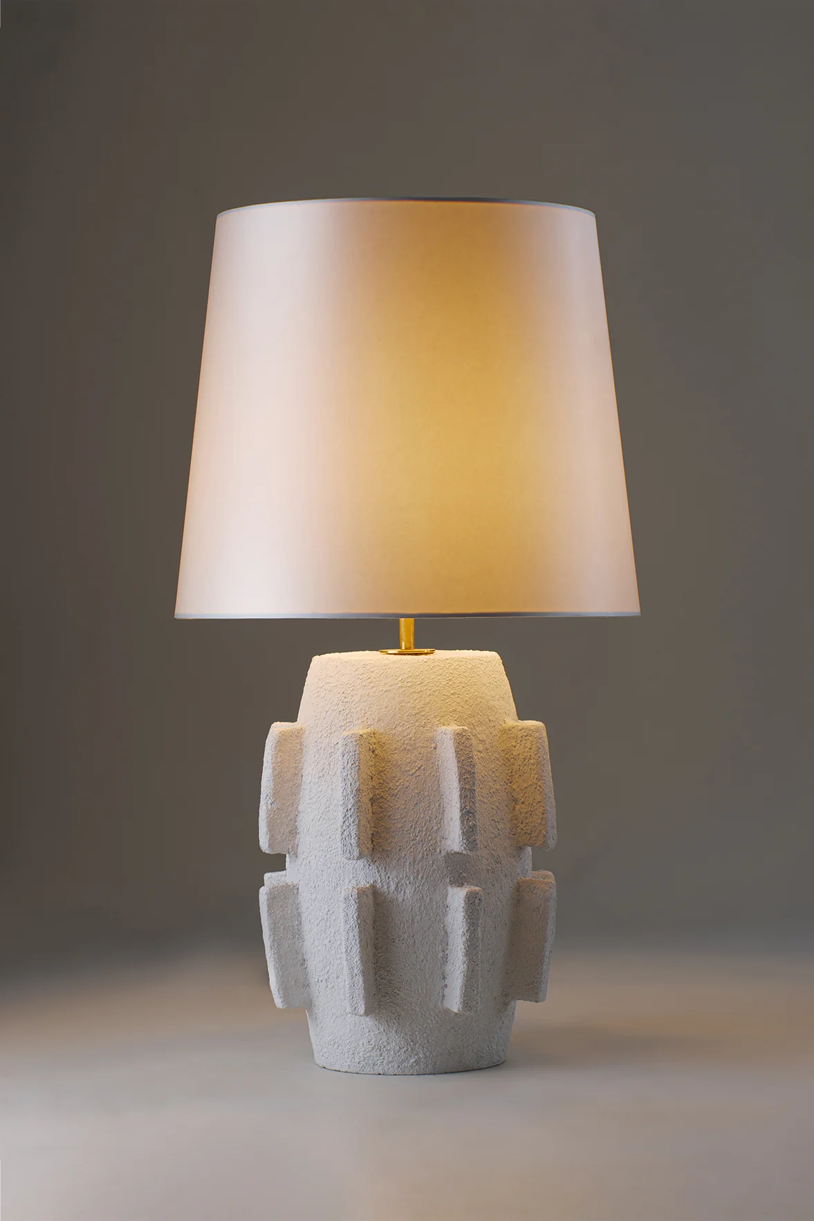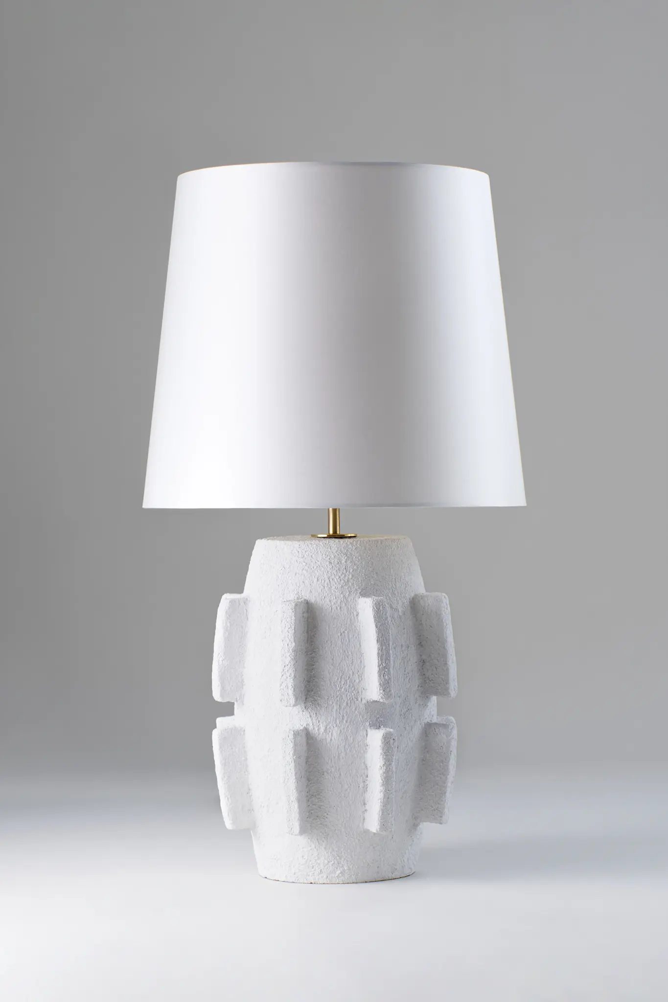 The Porta Romana Barbara Lamp honors the modernist sculptures of Barbara Hepworth. Each piece was originally hand sculpted and textured in clay, then fabricated in ceramic and finished with a series of reactive glazes. The result is a lamp with depth, character and sculptural appeal.
