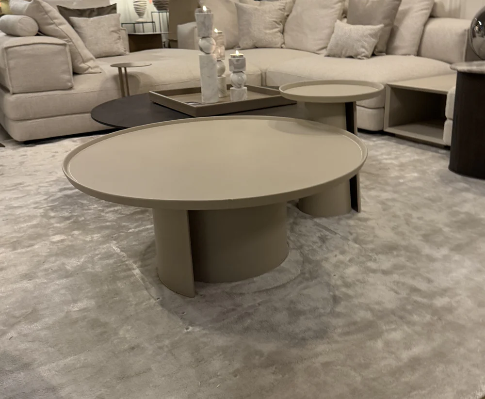 The BELLAGIO Coffee Table Round brings peace and balance to your living room. Round, minimalist and finished in micro leather in Craie-Greige. A stylish centerpiece for your daily moments.