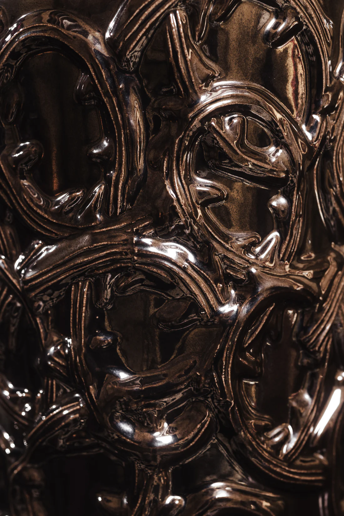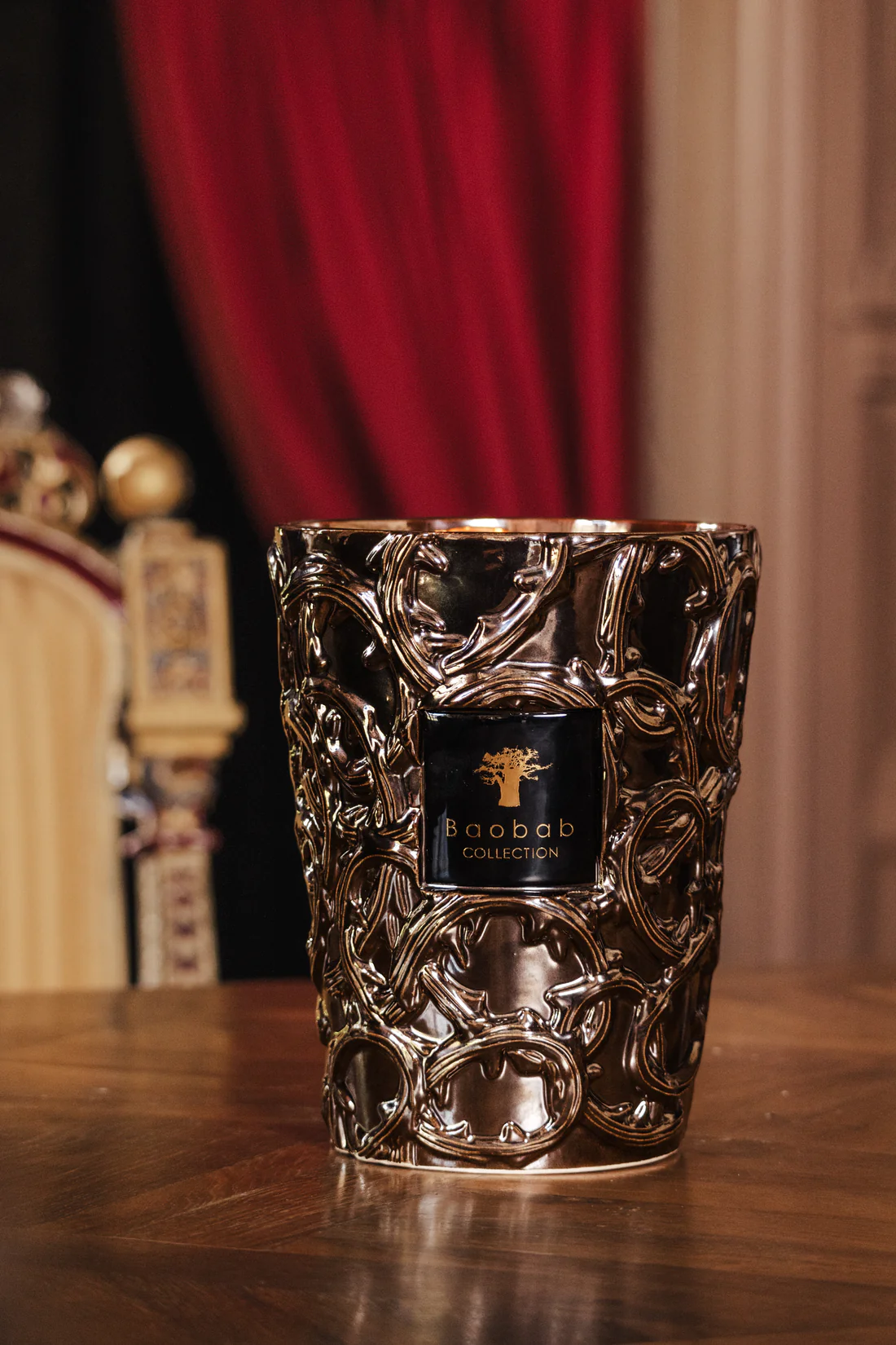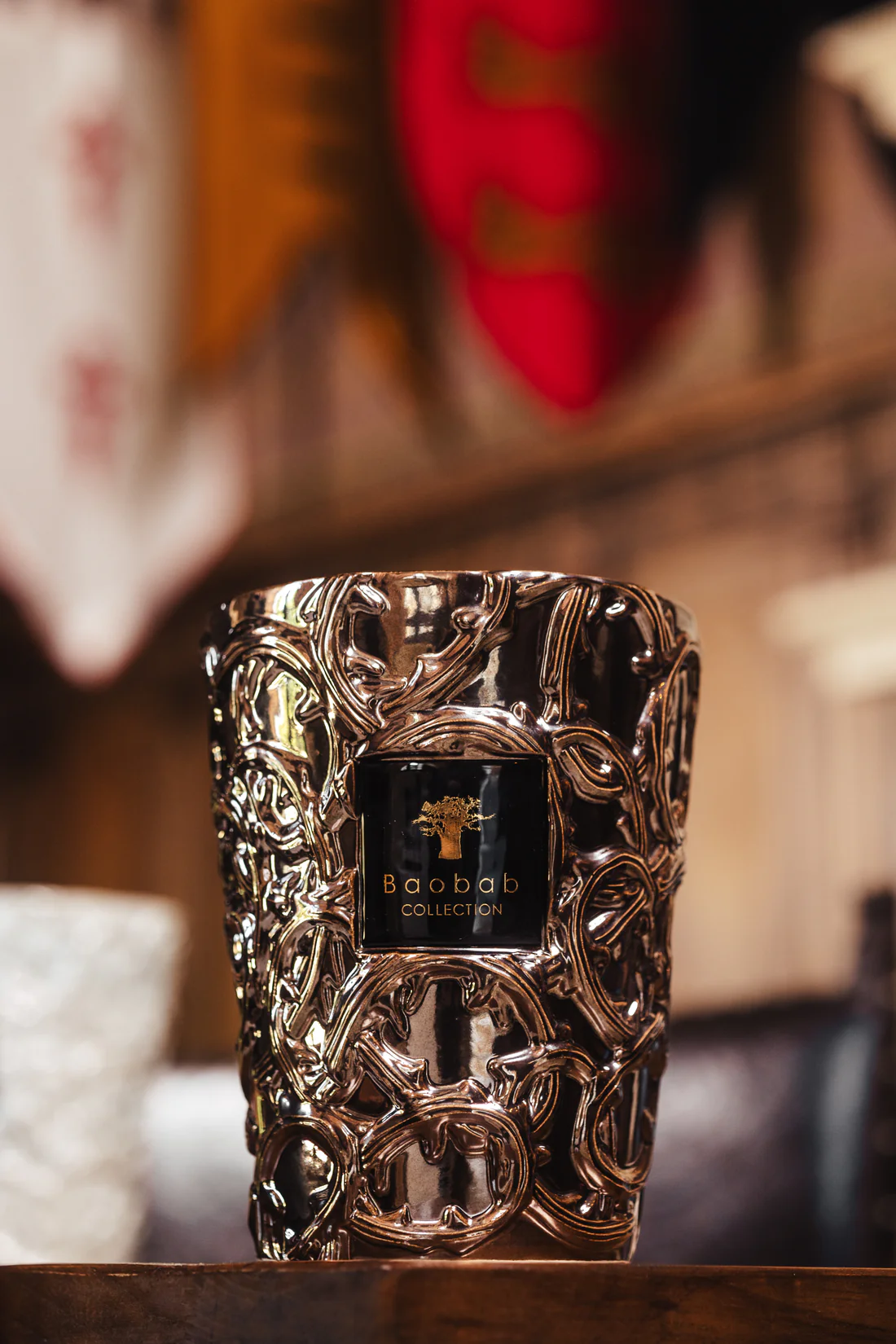 The Cernunnos scented candle takes its name from the Celtic god of nature and animals. Handmade in Portugal by artisan ceramists, it is covered with a debossed motif of intertwined stag horns, like an emblem engraved in the material. Its metallic gray enamel, with its striking brilliance, gives this scented candle a powerful, sculptural presence. Like an assertive scented object, Cernunnos asserts itself with strength and elegance.
