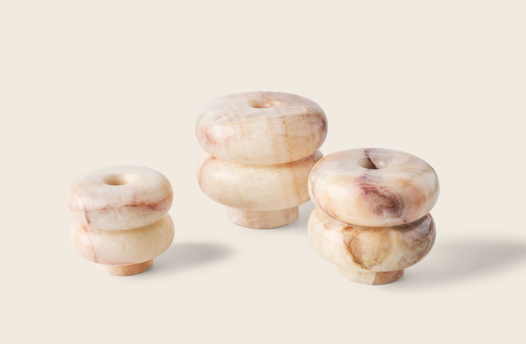 The Zaconi C-Holder Sora Beignet blends playful curves with refined craftsmanship. Carved from premium natural onyx, its soft, rounded beignet-inspired shape offers both charm and sophistication. Each piece features unique veining, making it a true one-of-a-kind decorative treasure.