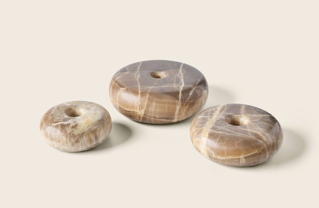 The Zaconi C-Holder Sora Cairn is more than a candle holder—it is a refined sculptural object crafted from premium natural onyx. Inspired by the serene balance of cairn formations, it brings harmony and understated luxury into your home. Each piece showcases its own unique veining, making it a true one-of-a-kind treasure.