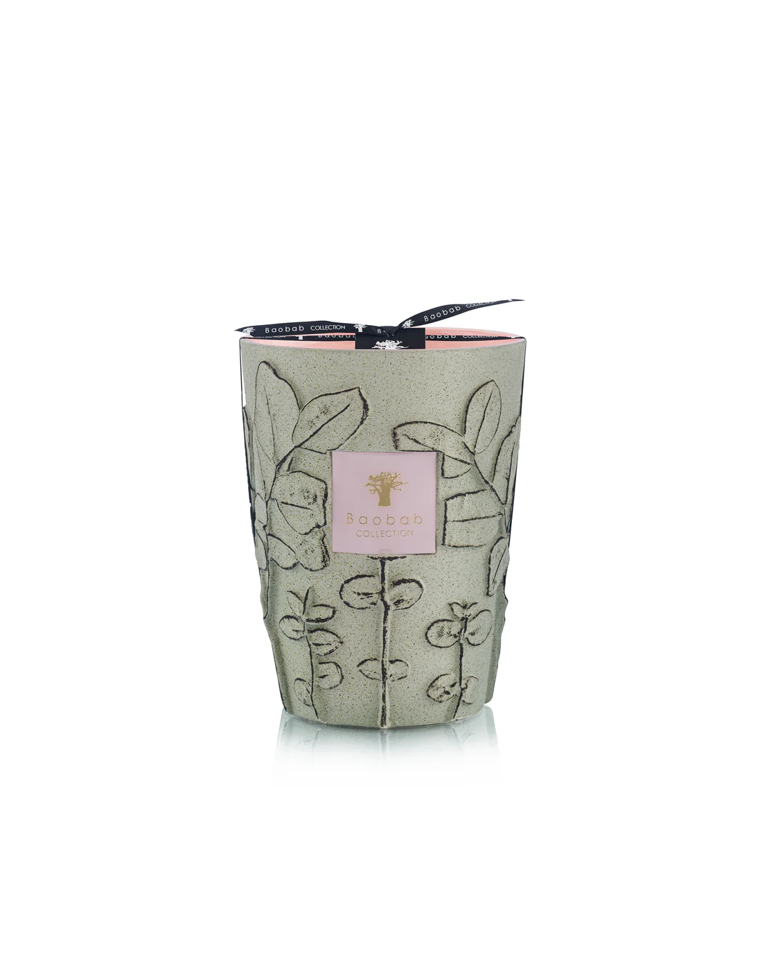 The Maquis scented candle is a refined piece of art, handcrafted by Portuguese artisans. Its combination of matte speckled green exterior and glossy pink interior creates a unique and elegant contrast. Inspired by Mediterranean nature, the outer surface is adorned with branches and leaves, reflecting the rugged shrubland.
