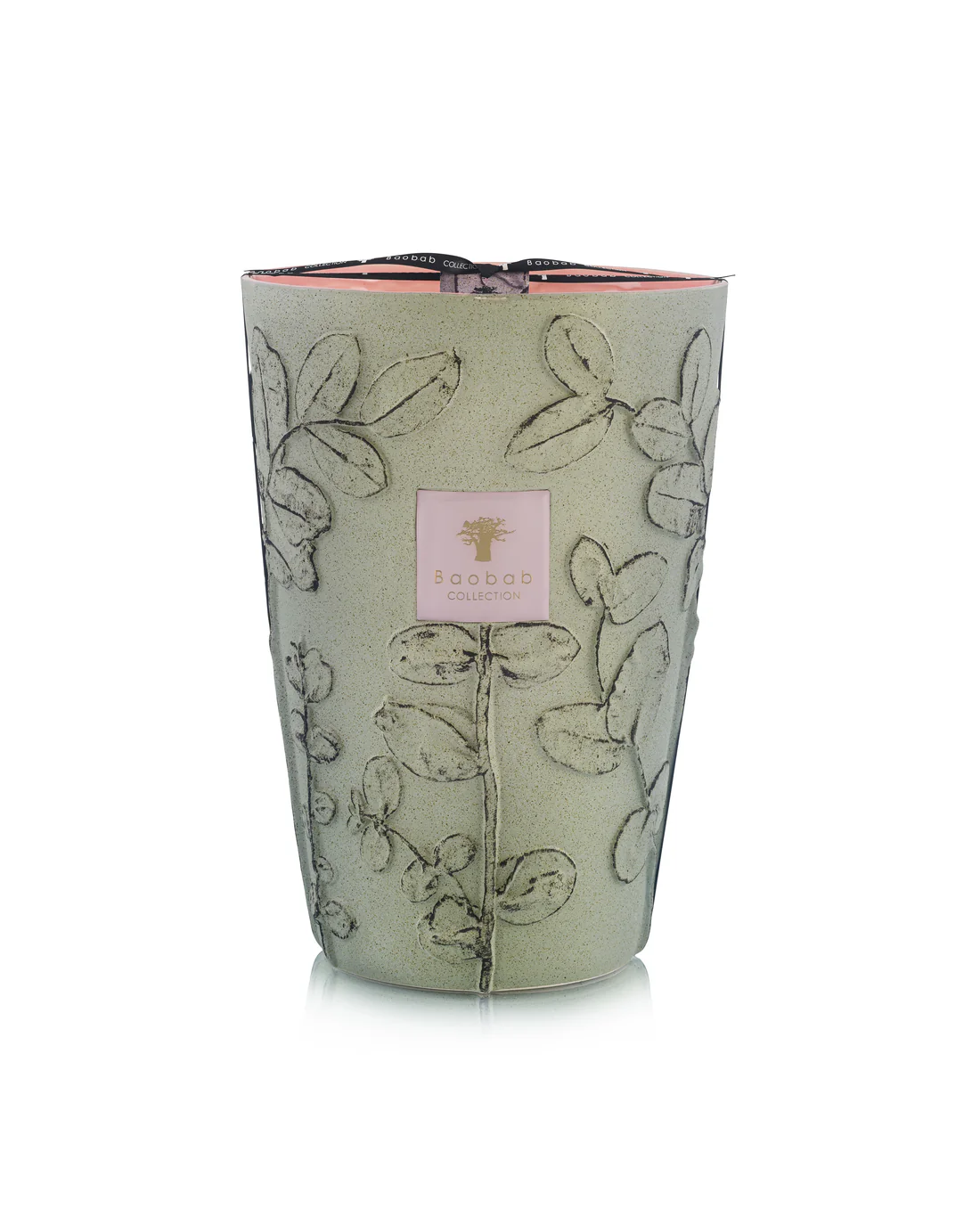 The Maquis scented candle is a refined piece of art, handcrafted by Portuguese artisans. Its combination of matte speckled green exterior and glossy pink interior creates a unique and elegant contrast. Inspired by Mediterranean nature, the outer surface is adorned with branches and leaves, reflecting the rugged shrubland.