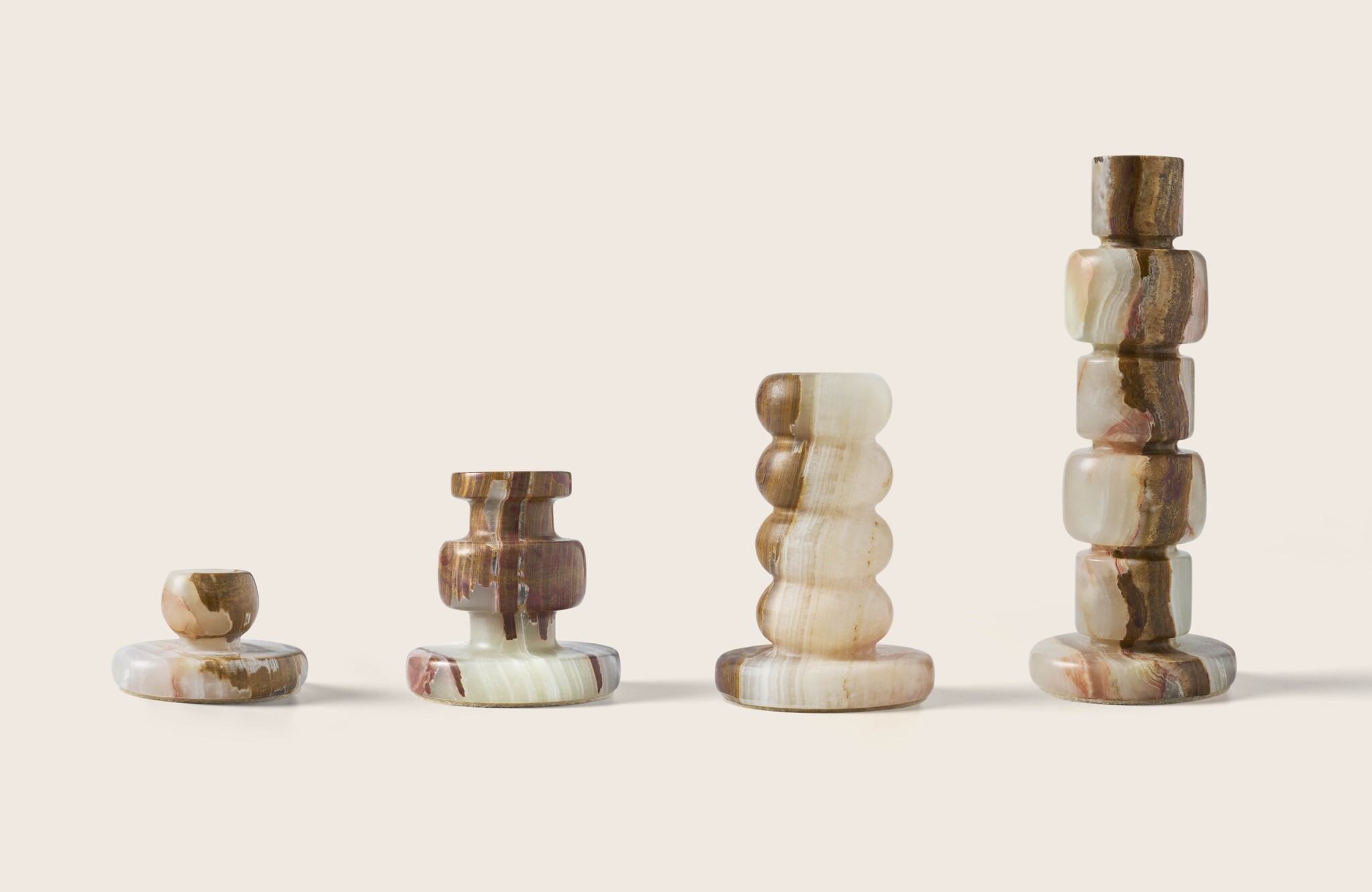 The rich brown tones and unique vein patterns make each holder an exclusive object. Once light plays through the stone, it creates a hypnotic, warm glow that instantly gives your living room, bedroom or dining area a high-end look.