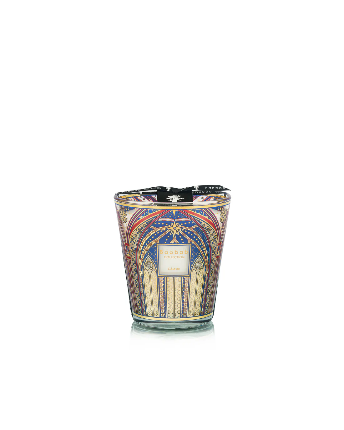 The Céleste scented candle is decorated with a screen print in 24-karat gold and deep blue, reminiscent of the architecture of the vault of Krakow Cathedral.