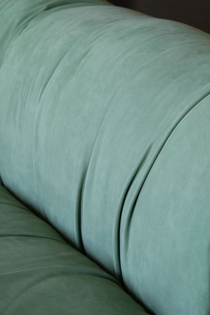Fine stitching adds subtle tension to the design, enhancing its visual softness. The Baxter leather used, chosen for its exceptional quality, molds elegantly to the organic lines of the sofa, developing a unique look with time.