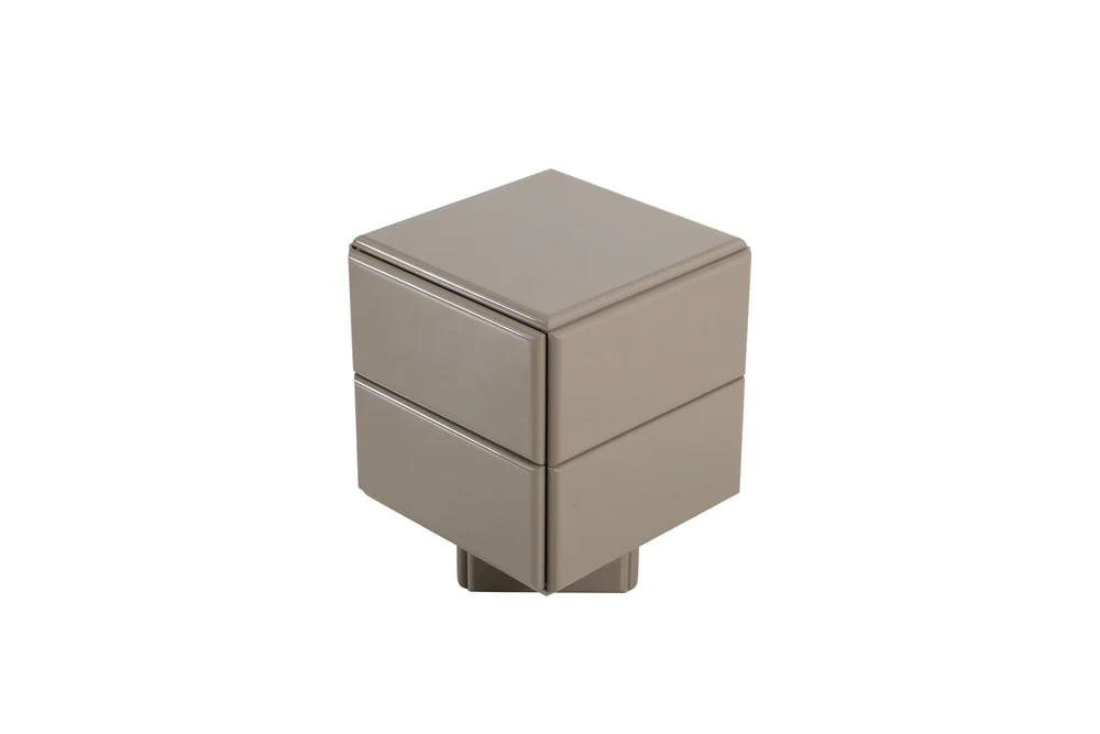 The CUBO Nightstand Drawers brings peace and order next to your bed. Compact, sleek and finished in glossy taupe for a calm, stylish bedroom without visual clutter.