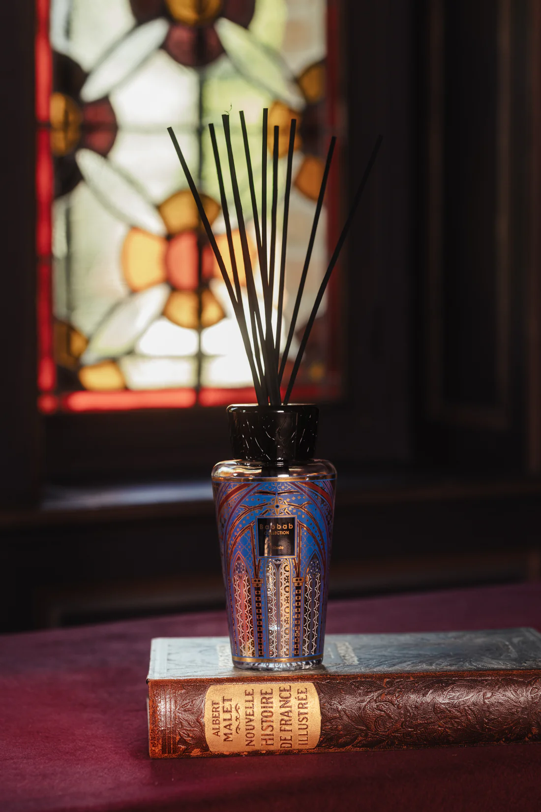 The Céleste perfume diffuser is decorated with a screen print in 24-karat gold and deep blue, reminiscent of the architecture of the vault of Krakow Cathedral.