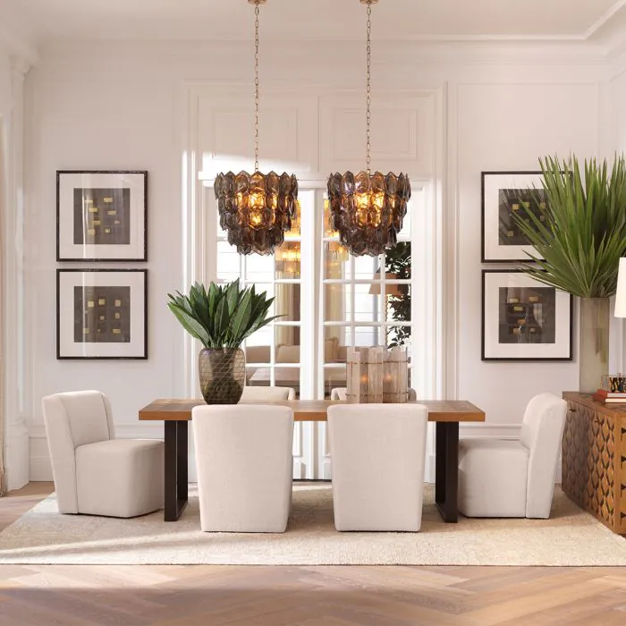 The warm oak tones combined with the elegant bronze finish give your dining space instant depth and character. The graceful contours soften the powerful design, creating a subtle balance between modern and timeless.