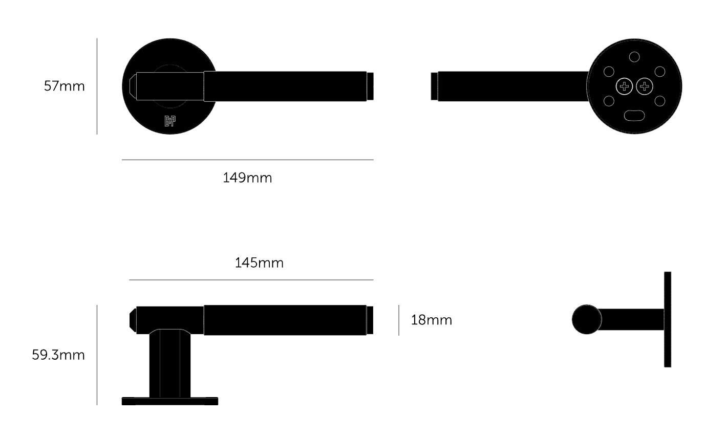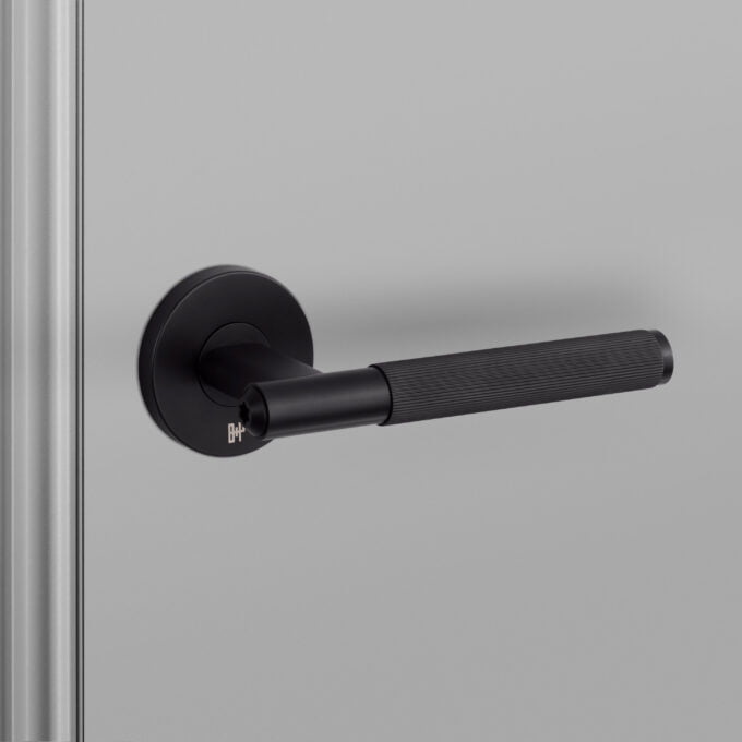 Sprung door handles made of solid brass in black. This door handle features elegant linear knurled details and is hand refined. Sold as a pair.
