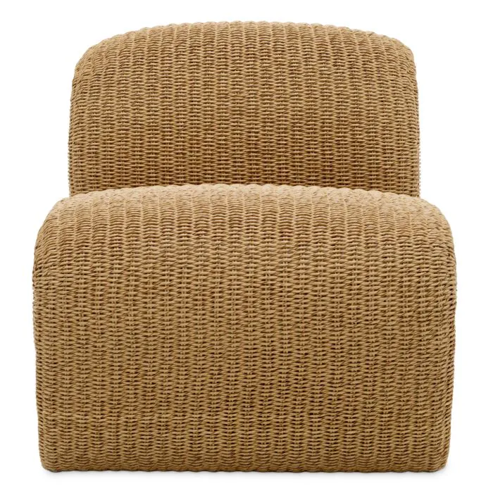 The Vignola Outdoor Chair combines luxurious design with full outdoor durability. Aluminum frame, quick-dry foam and faux rattan in natural tone. You'll enjoy style and comfort, weather or no weather.