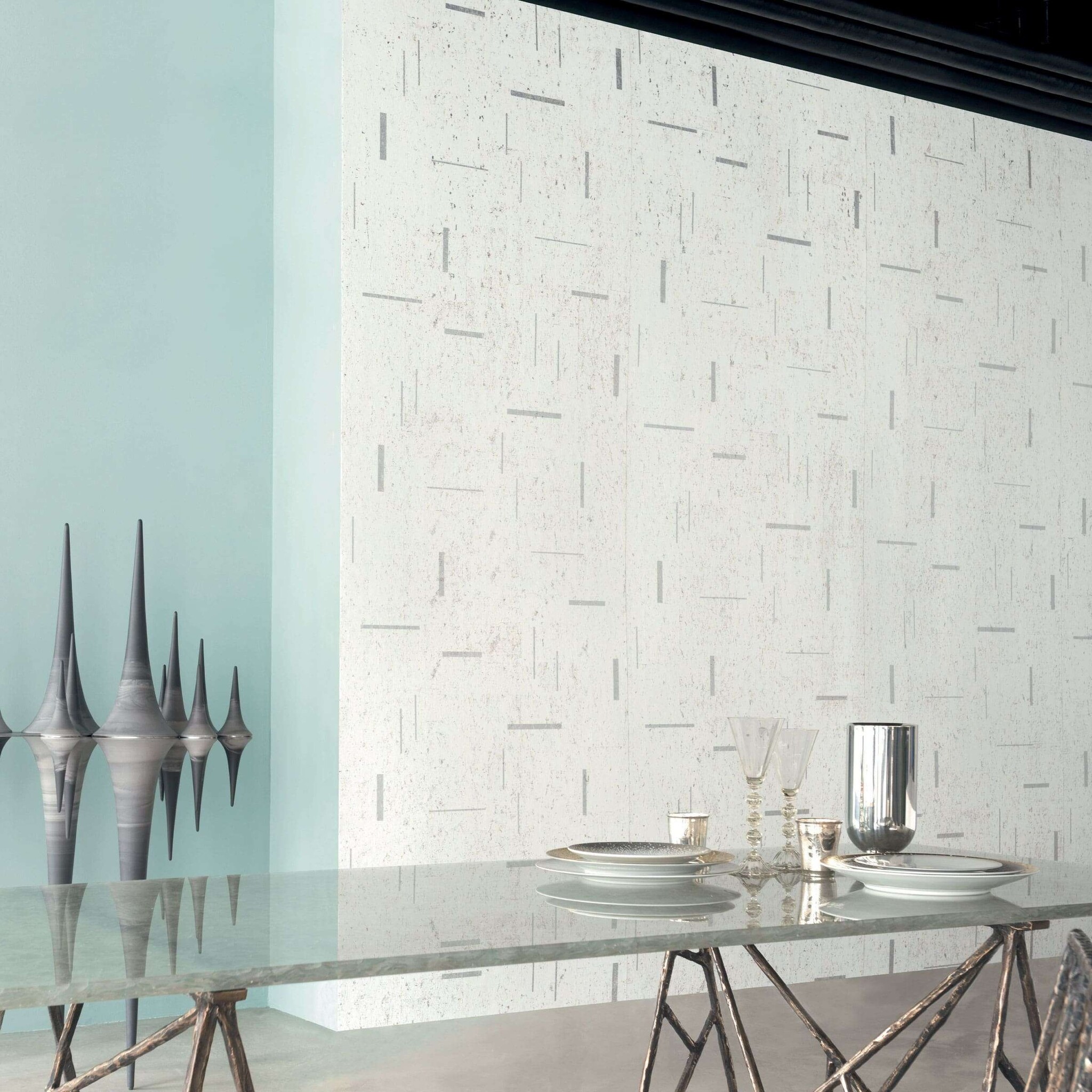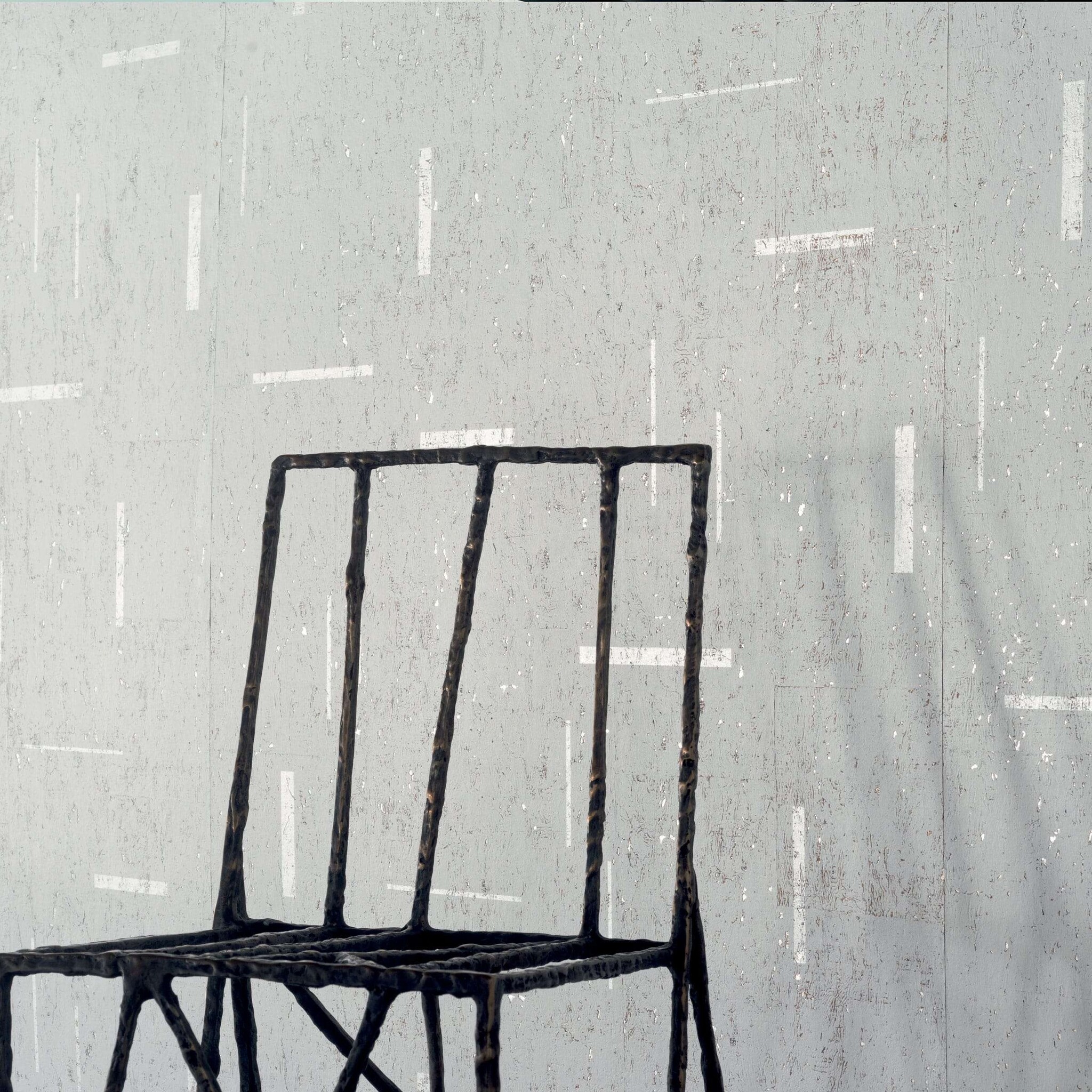 The ELITIS Etincelle wallpaper is made of cork, which gives a beautiful atmosphere. This has vertical and horizontal rectangles that make the wallpaper dynamic. The combination of cork and metallic makes the wallpaper come to life through the light.