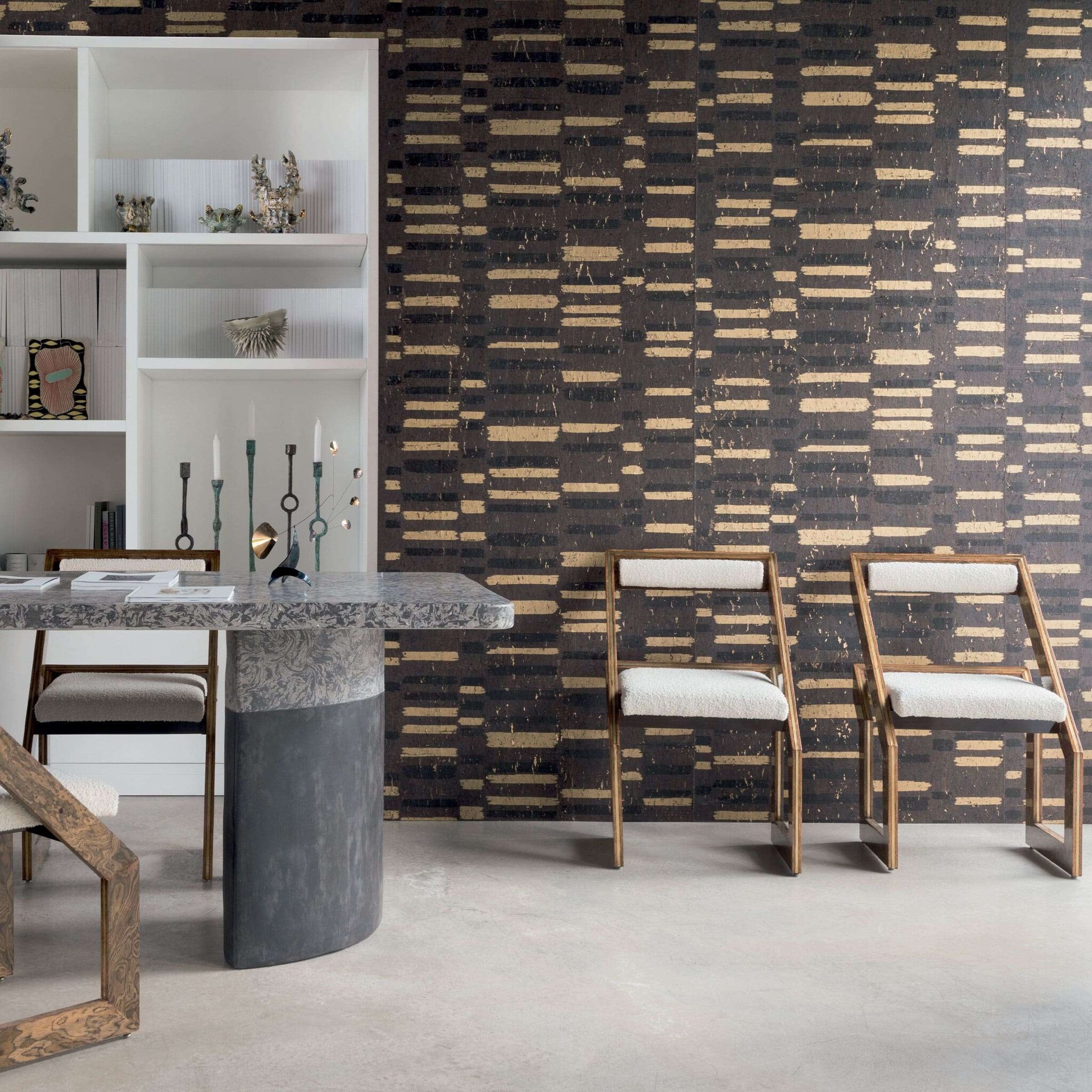 The Essence Liege - Metal Brush - Un Charisme En Or of Élitis is sold per rol of 100cm. This wallpaper has a width of 91cm and is made from 100% cork on paper backing quality. Wallpaper rolls can always be returned within 30 days.