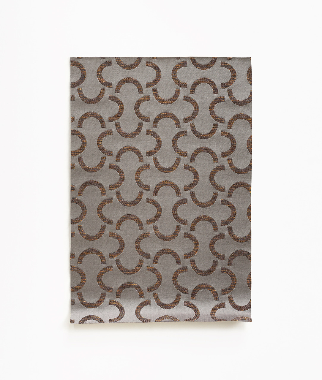 Fabric whose geometric motif is generated by the contrast between the shiny satin background and the rustic yarn of the relief pattern with its metallic reflections. For medium-intensity seating.