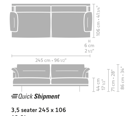 George Sofa - 3.5 Seater - Brescia 01 PG3 - Gunmetal Leg