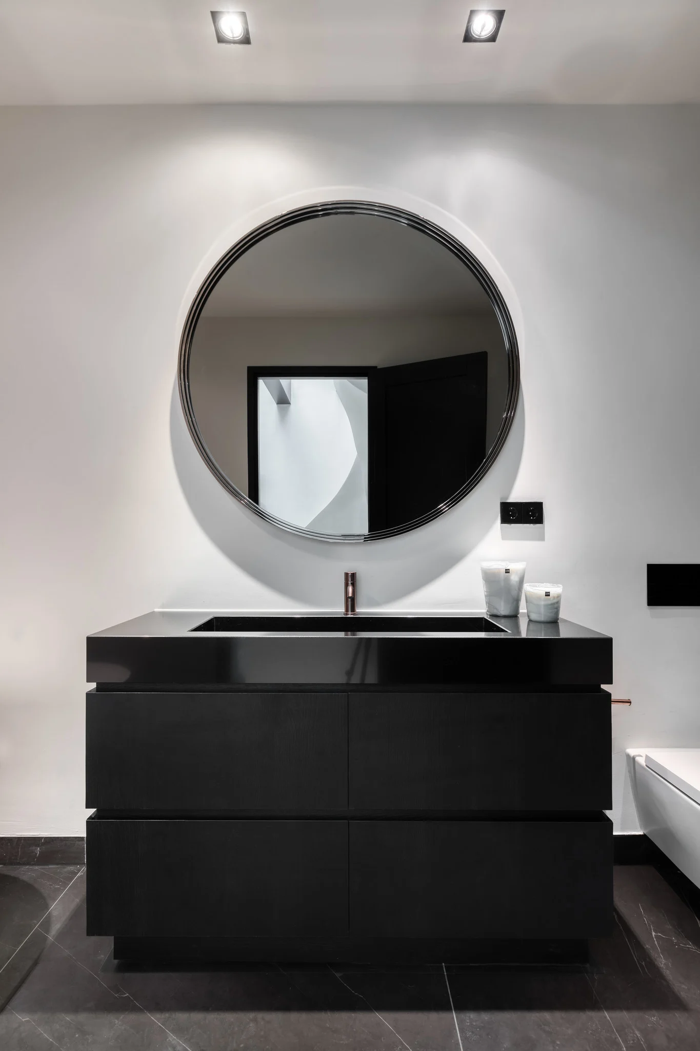 Smoked mirror glass for warm, elegant reflections