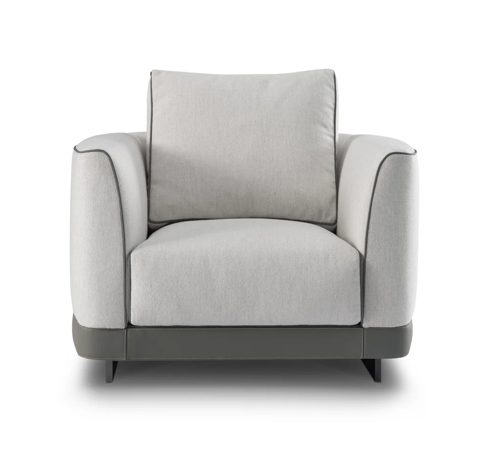 The Gregorio armchair offers soft comfort with a modern design. Perfect for stylish living and reading corners where tranquility and luxury come together.