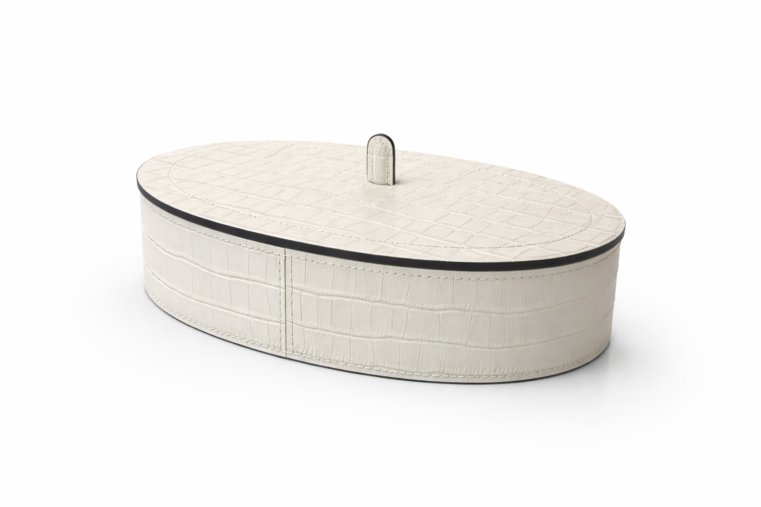 Harris Trinket Box Oval Large - Calfskin Crocodile - Light Grey- Storage box
