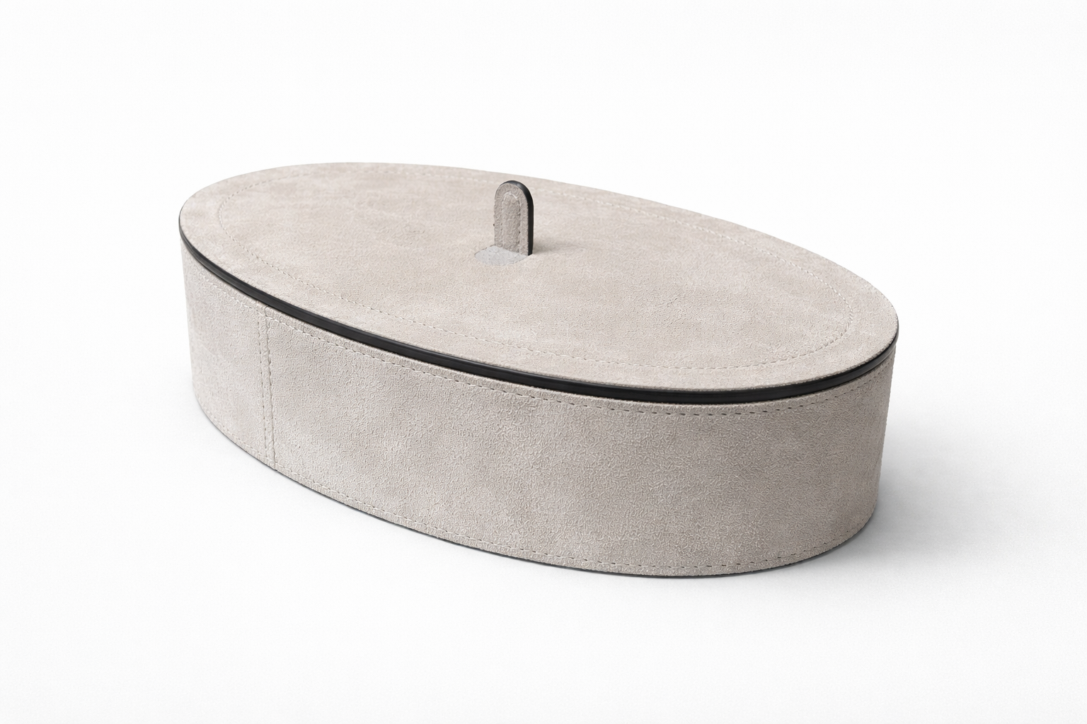 Harris Trinket Box Oval Large - Calfskin Suede - Light Grey - Storage Box