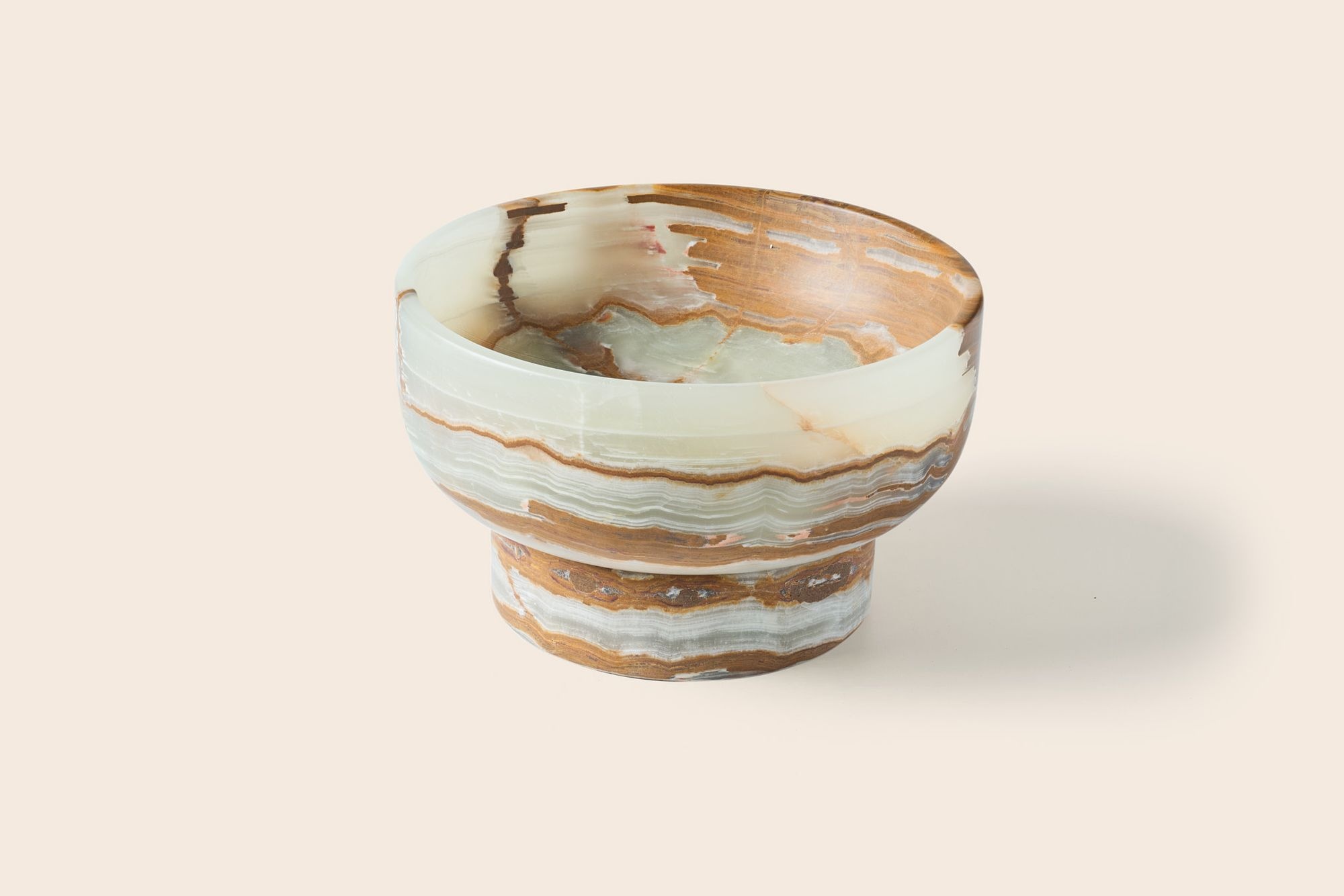 Meet the Zaconi High Bowl – a sculptural masterpiece crafted from luxurious natural onyx. Its rich veining and warm tones create a sense of refined elegance, making it an instant eye-catcher in your interior. No two pieces are ever the same.