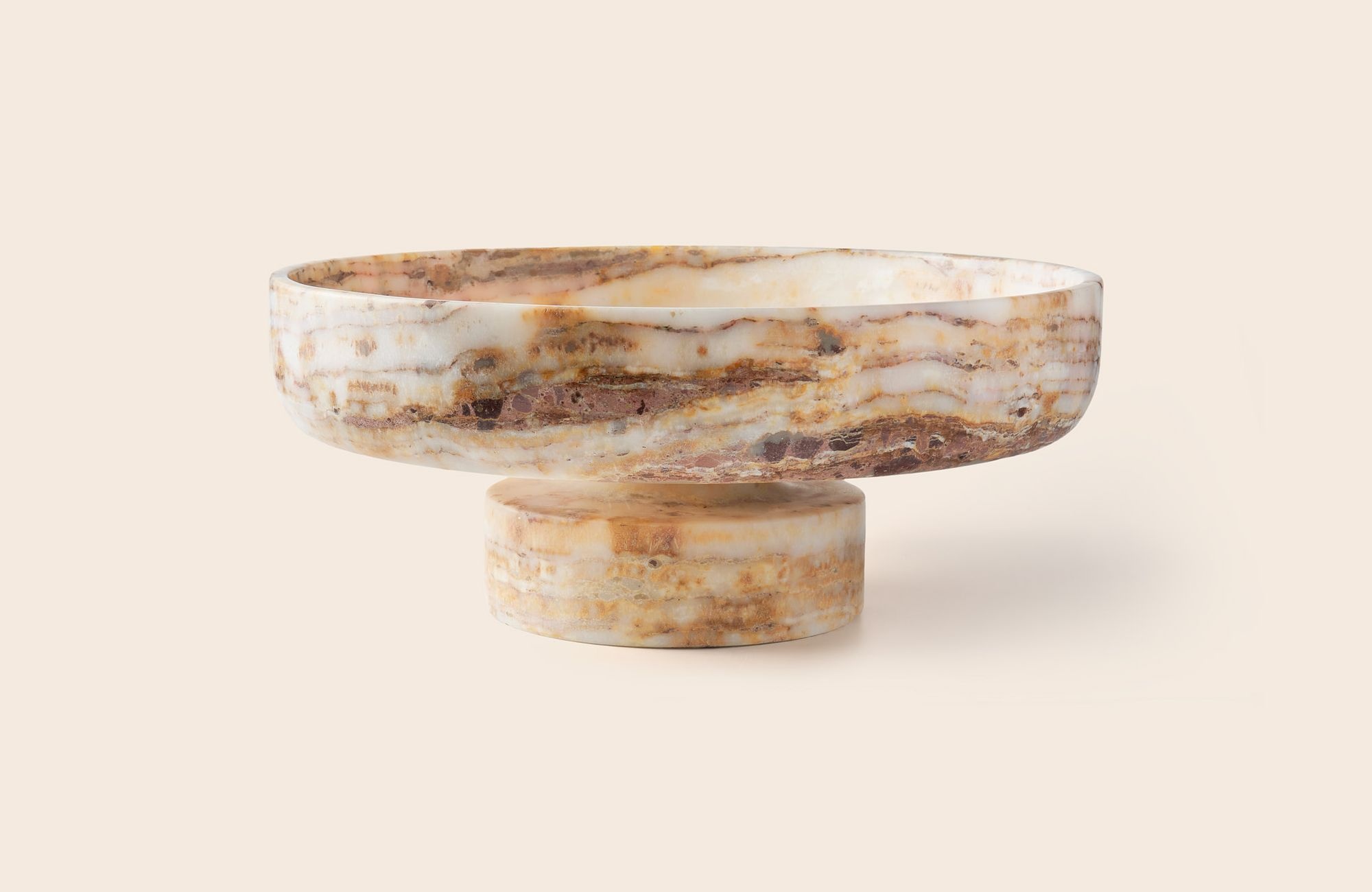 Meet the Zaconi High Bowl – a sculptural masterpiece crafted from luxurious natural onyx. Its rich veining and warm tones create a sense of refined elegance, making it an instant eye-catcher in your interior. No two pieces are ever the same.
