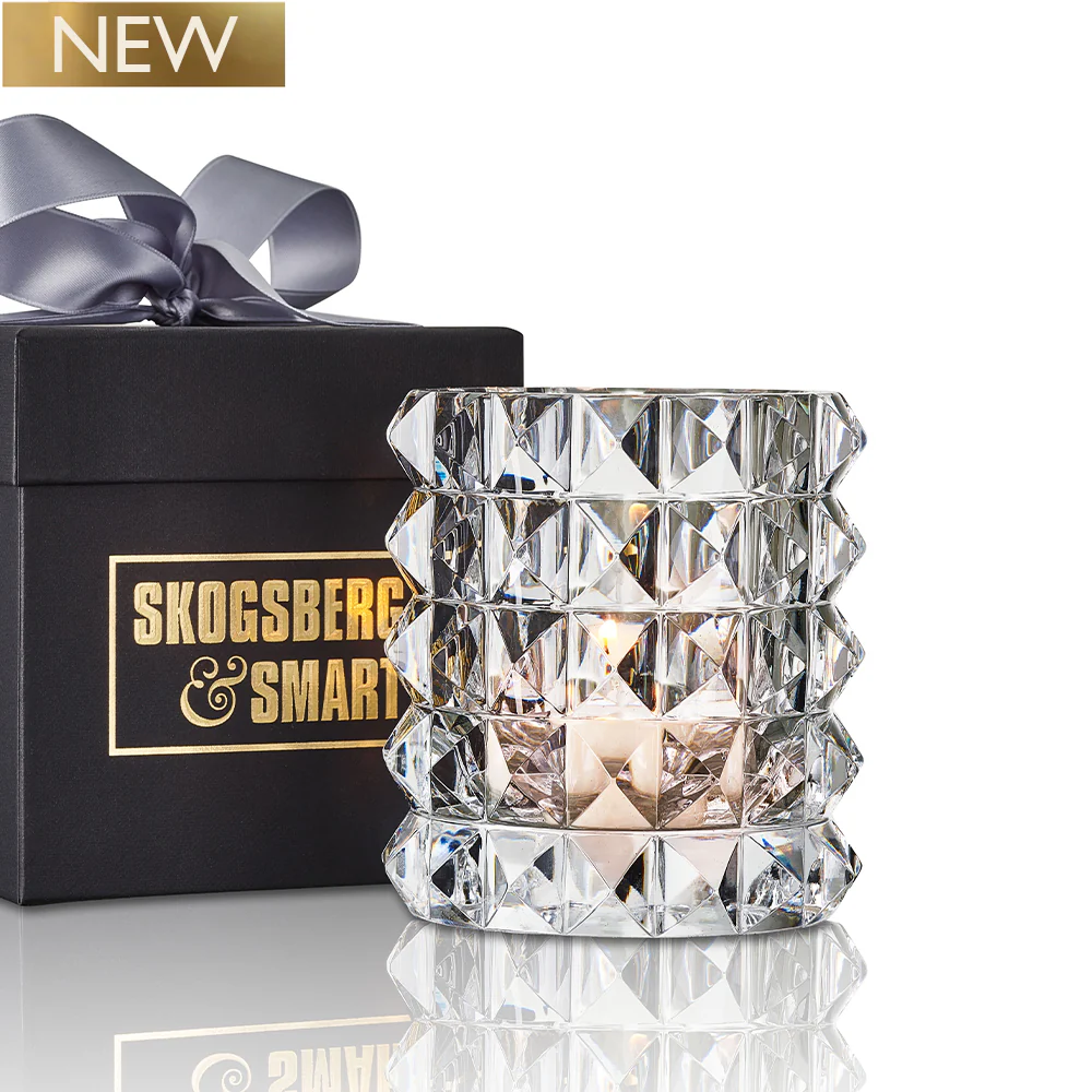 The Skogsberg & Smart Hurricane Crystal Lamp Medium Stud (18 cm) blends strength and sophistication. Hand-cut crystal with a bold geometric texture – radiant, luxurious, and timeless.
