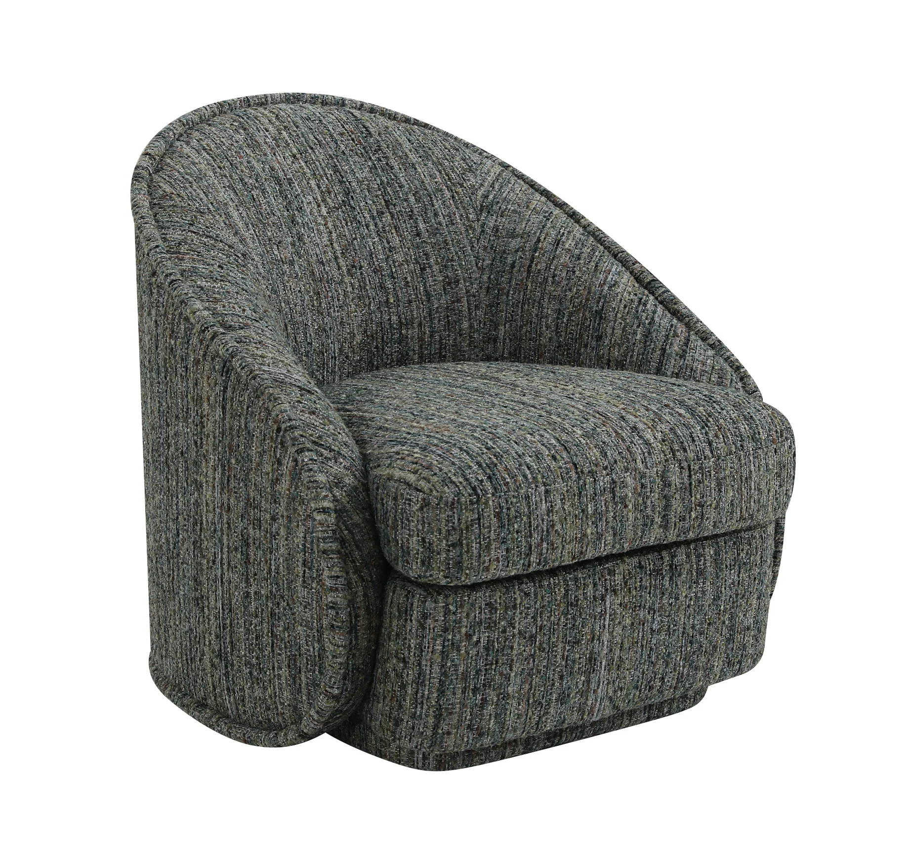 The Kimberly Arm Chair blends comfort and elegant design with rounded shapes and soft upholstery. Perfect for living rooms, bedrooms, or reading corners.