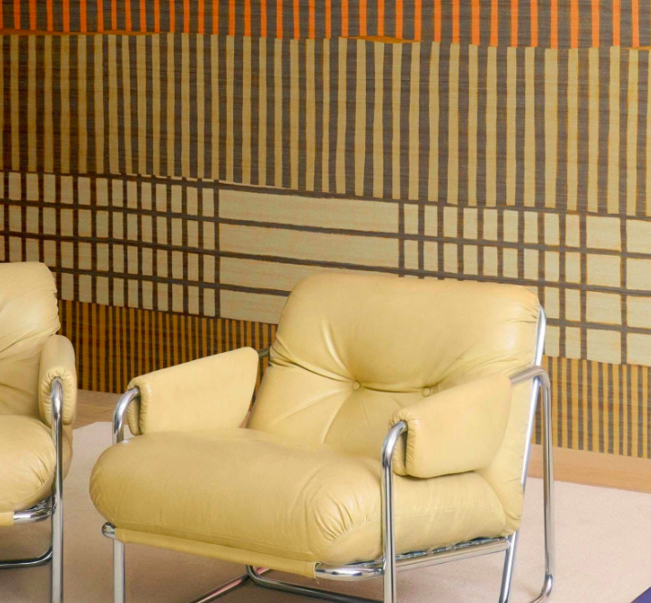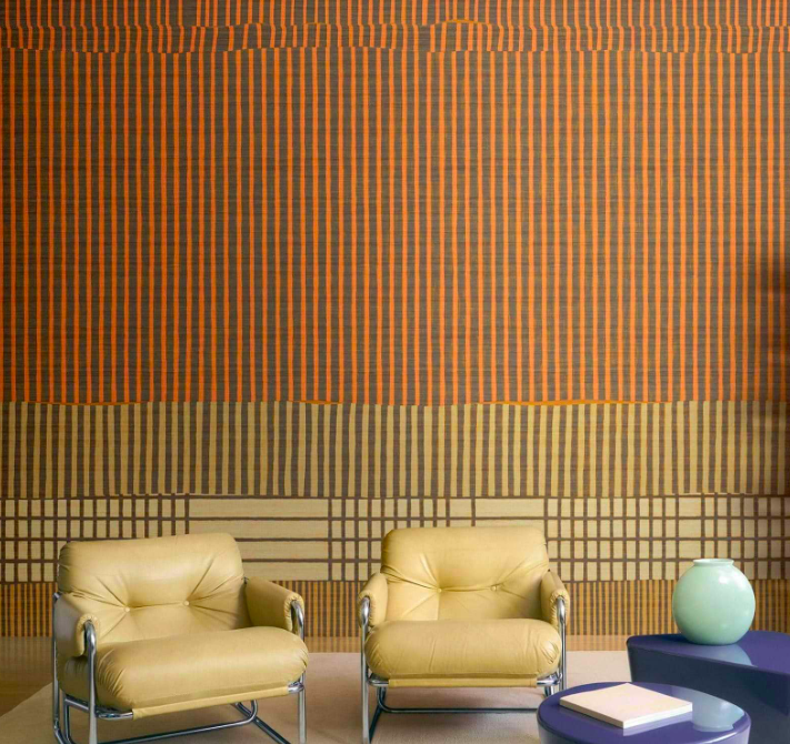 Create rhythm and calm with Lignes Telluriques by Elitis: a panoramic mural of layered lines, earthy motion and modern graphic elegance.