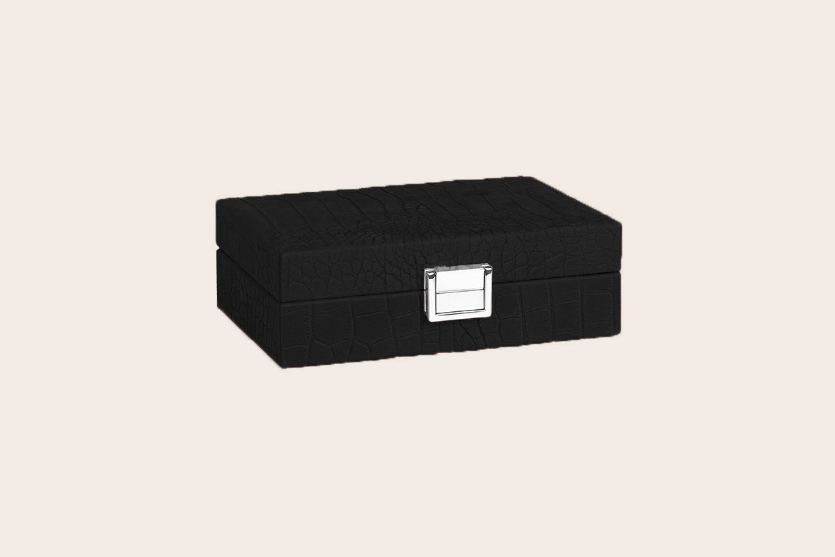 Luxury Cards Coffret Noir - Handmade Alligator Print Leather Card Box | French Design & Crafts