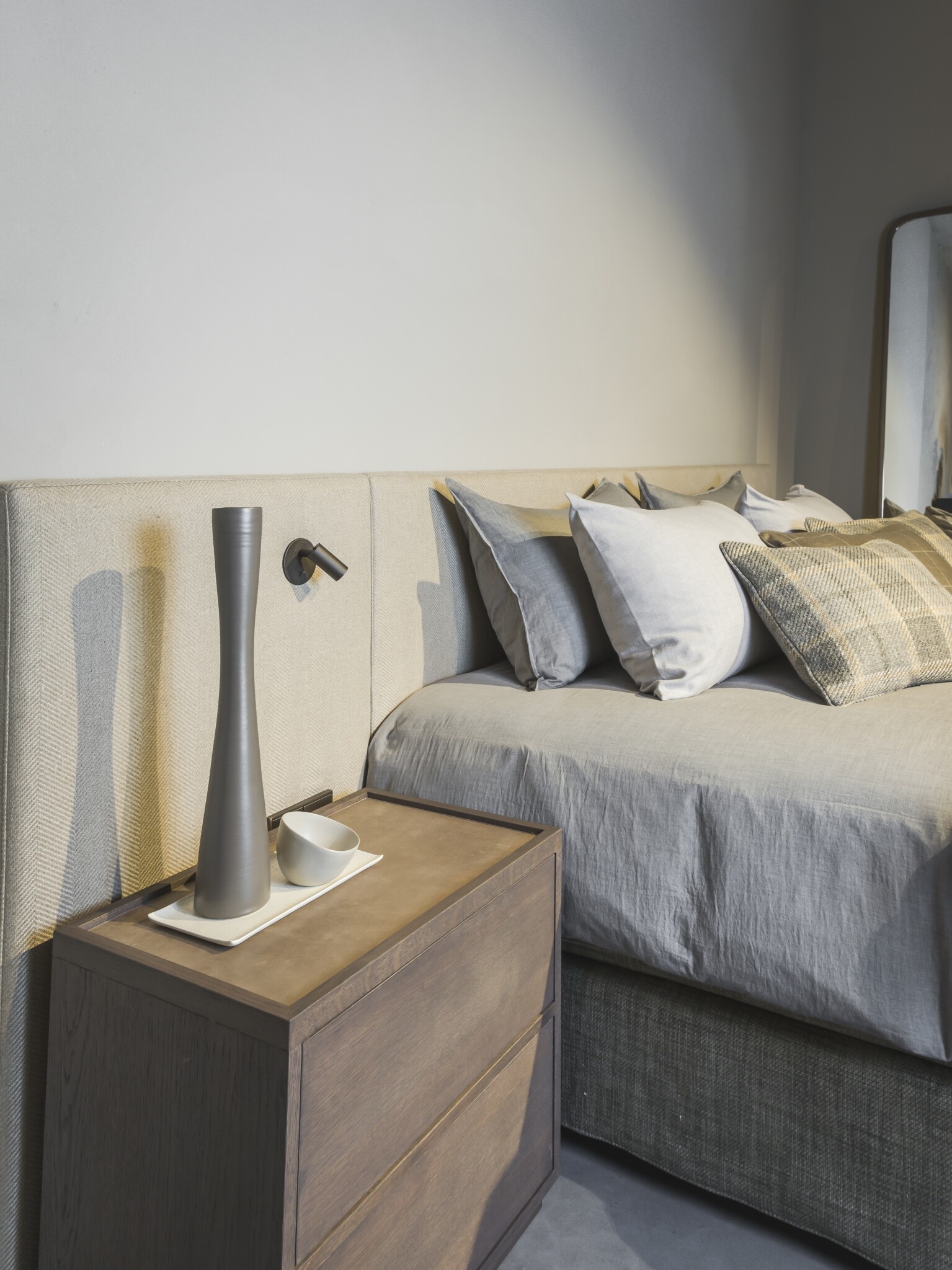 Palermo is a spacious king-size headboard with a timeless and modern design. The three sleek panels are available in any desired width and height.