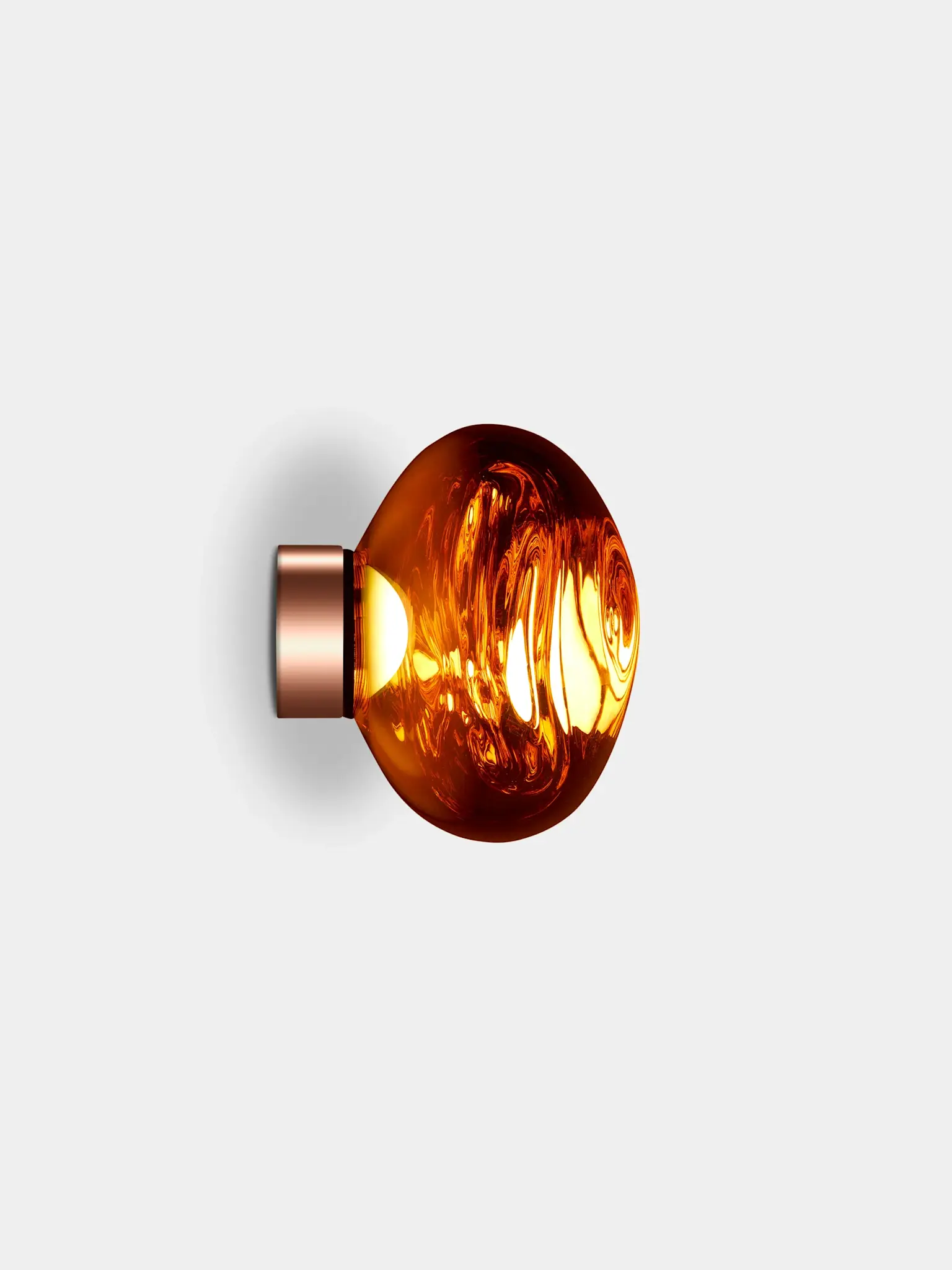 The Melt Mini wall light in polished copper transforms your interior with an enchanting molten glass effect. Luxurious design, high-quality LED and pure ambience in one statement piece.