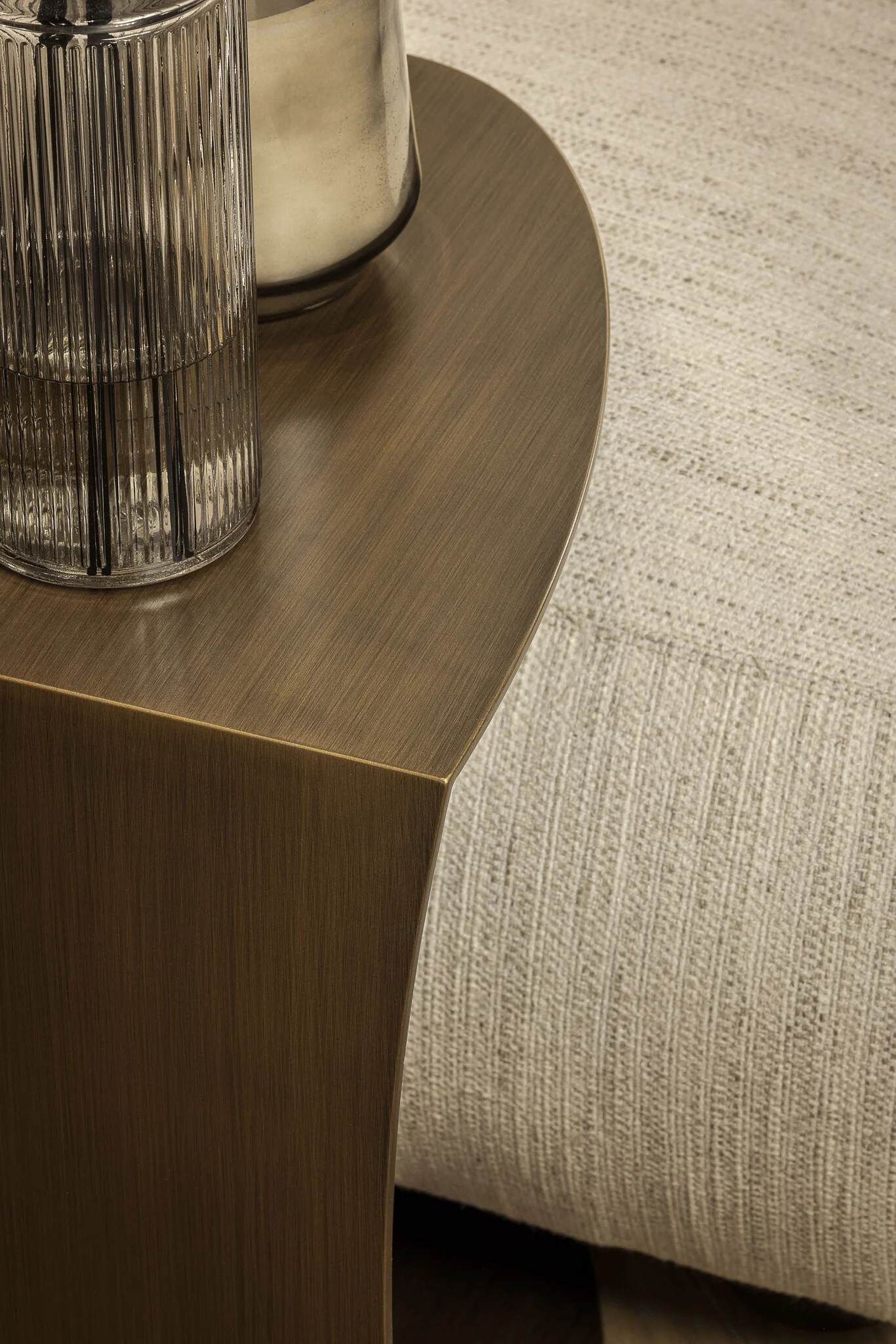 The Montu U-table in bronze finish is slim, stylish and ideal for sliding over the sofa. Round design and refined finish give your interior a luxurious feel.