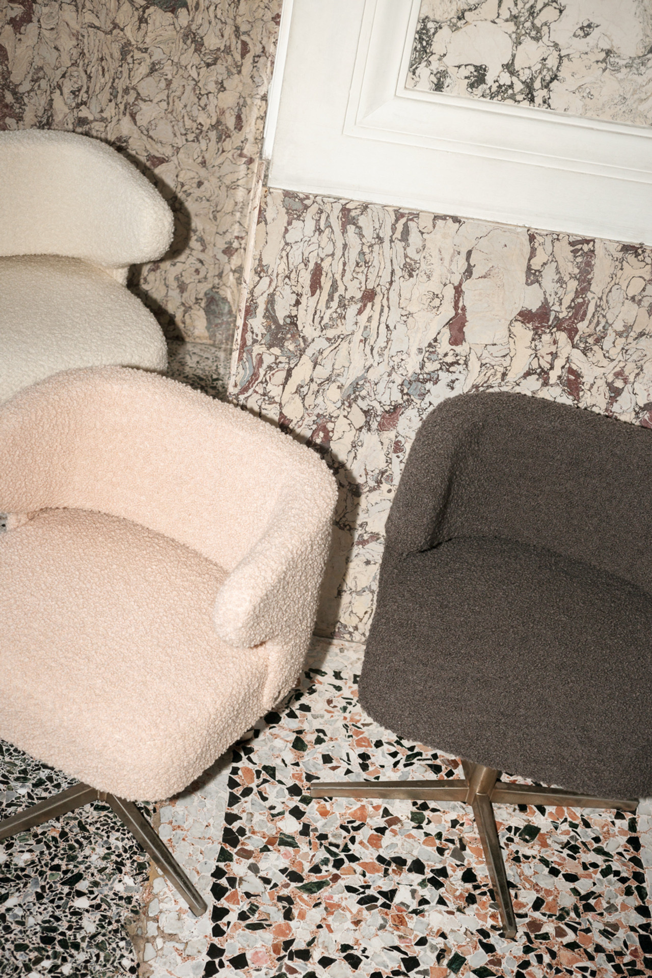 Warm and strong wool bouclé with soft texture and natural look. Available in subtle shades. Perfect for intensive seating. Made in Italy (Martindale 40,000).