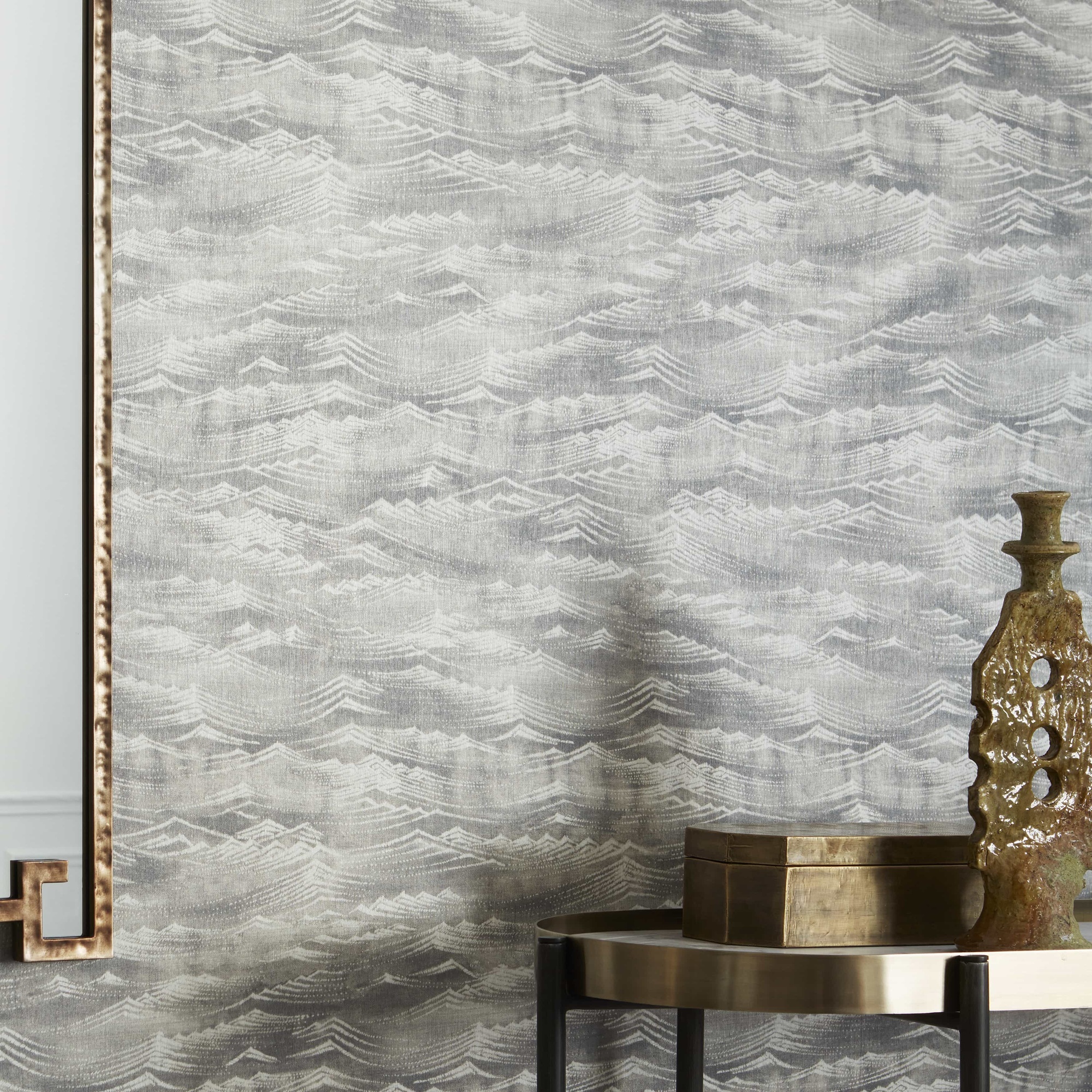 Nami is a representation of a technique known as "Katagami. The Japanese-inspired pattern is reminiscent of waves or small mountains. The digital print on a laid wire gives a textile effect and a delicate sheen.