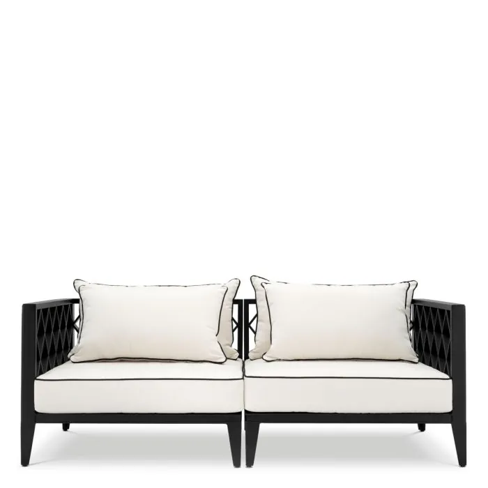 With its elegant design and comfortable seating, this two-seater sofa is perfect for relaxing moments in the garden, on the terrace or by the pool. The contrasting piping on the cushions adds a sophisticated finishing touch.