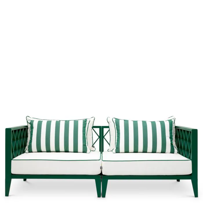 The Ocean Club S Outdoor Sofa combines an elegant green frame with soft Blaise off-white upholstery and Florent green cushions. This luxurious two-seater sofa brings style, comfort and timeless charm to any garden or patio.