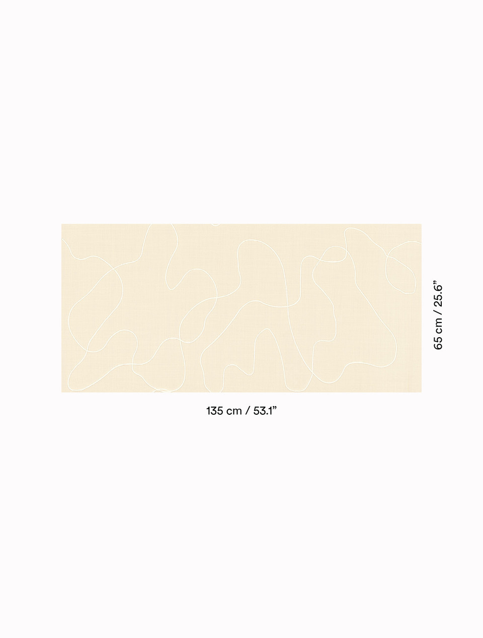This elegant fabric brings abstract art to life through a white chain-stitch embroidery depicting the flight of a dove. Inspired by the pure formal language of Jean Arp and Abstract Art, this design is a model of tranquility, movement and sophistication. The tone-on-tone embroidery is applied to a satin of 100% pure new wool, creating a subtle, almost poetic look.