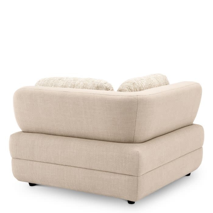 The Paulo Modular Sofa - Corner Module by Eichholtz combines luxurious materials with ultimate flexibility. The soft combination of Scalea sand and bouclé sonata cream fabrics gives the corner module a sophisticated and modern look, while the black legs provide a stylish contrast.