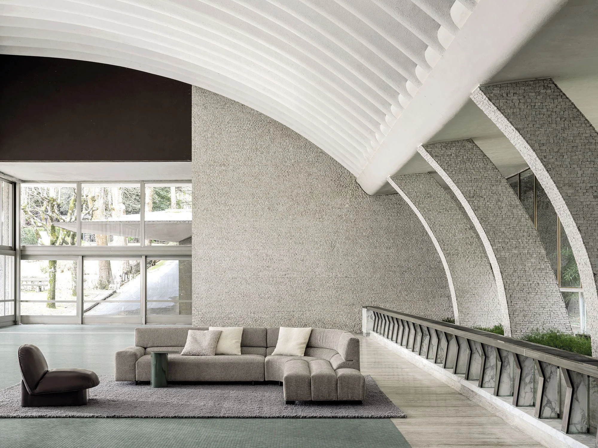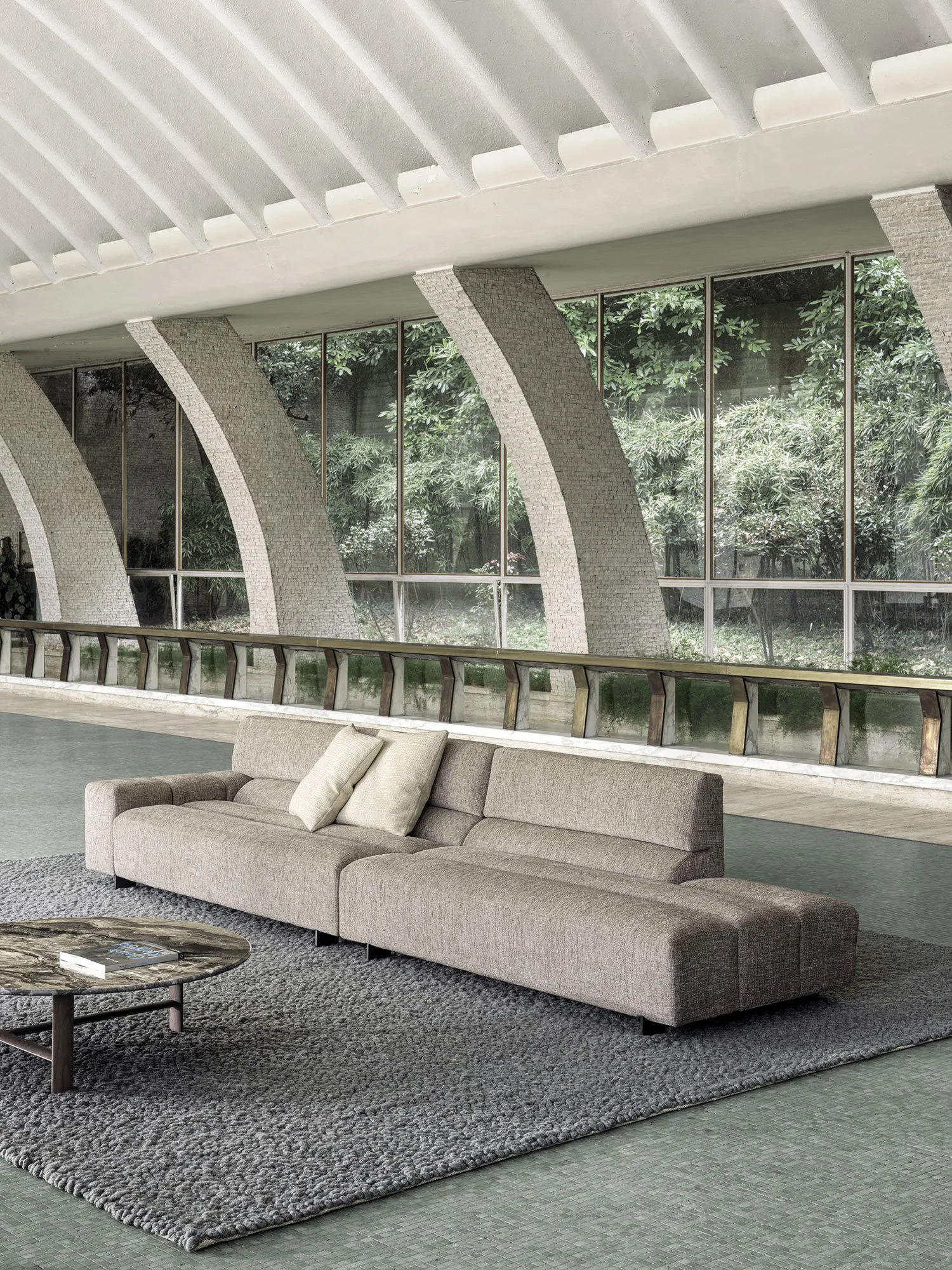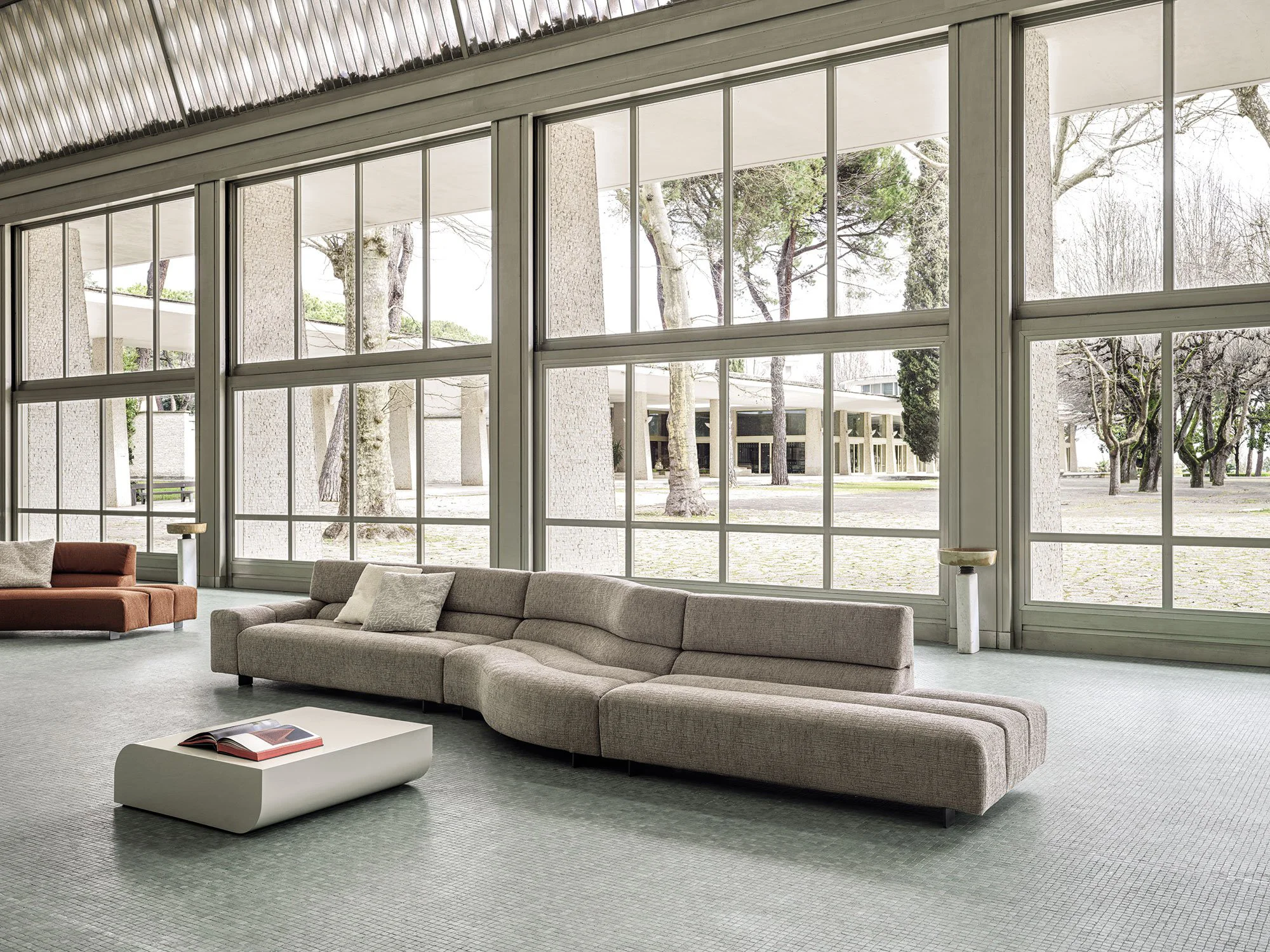 Composed of a rhythmic succession of softly padded tubular elements, Phil forms a fluid and contemporary silhouette. Its sinuous lines give the sofa an organic presence, introducing a sense of movement, softness and spatial connection.