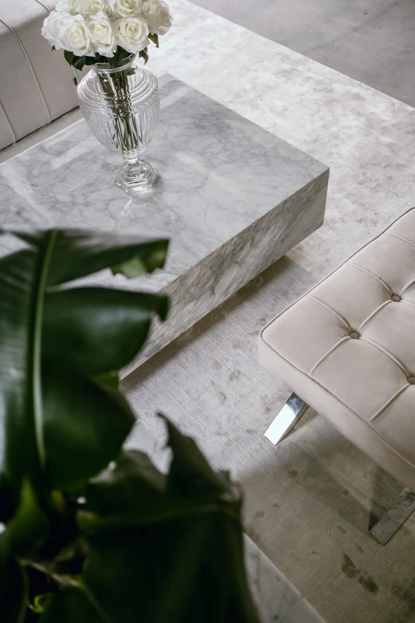 This table is understated luxury at its finest—a solid block of premium Carrara marble. Its strength lies in simplicity, letting the material speak for itself.