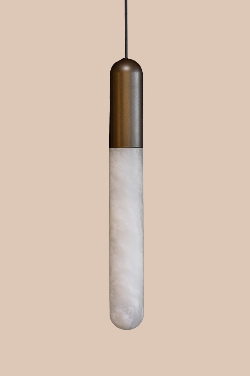 Alabaster Pendant Light Pillar – Modern Hanging Lamp in Alabaster & Metal – Dimmable LED 2700K, 30 cm Height