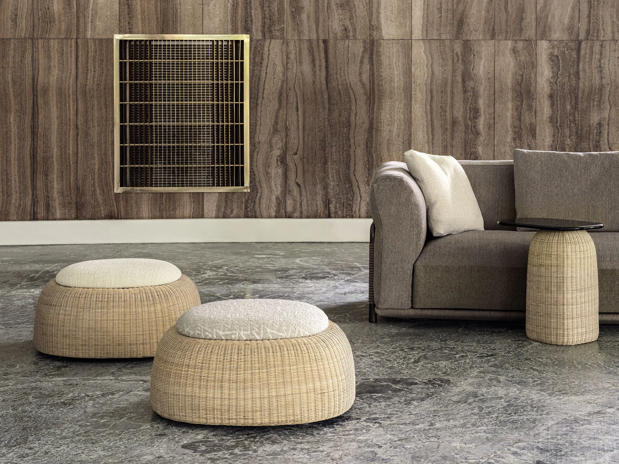 Designed by Federica Biasi, the Sam pouf celebrates craftsmanship, natural materials and understated elegance. Its woven wicker frame and flowing, organic shape create a sense of calm, warmth and effortless comfort.