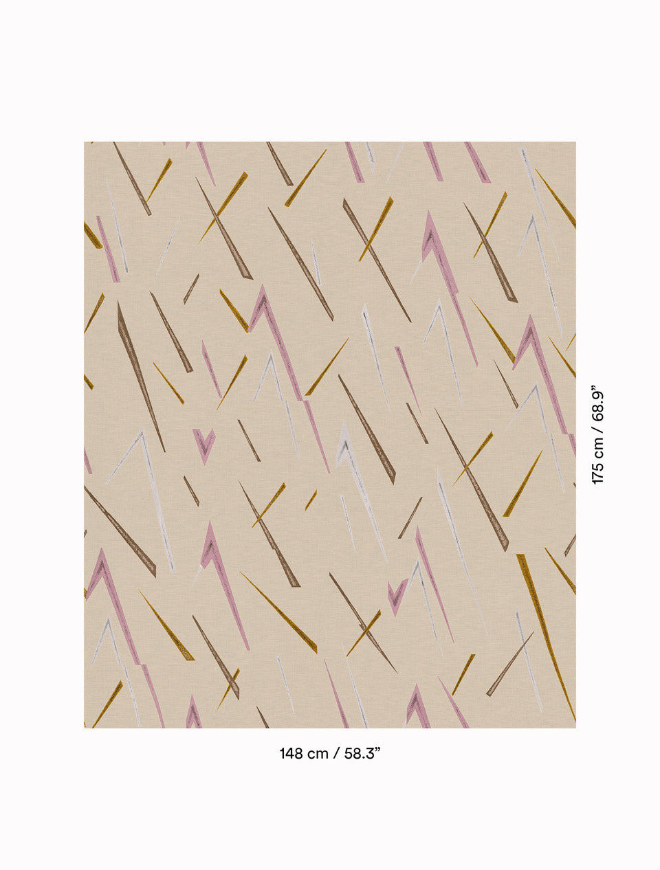 This jacquard lampas fabric captures the abstract essence of Japanese figurative culture with a modern twist. The brilliance of silk and lamé yarns on an ivory background is reminiscent of lightning bolts - powerful, mesmerizing flashes of light that capture the imagination. The special honan weave and fil coupé techniques give the fabric a profound texture that enriches any room.