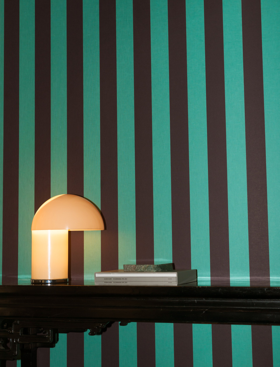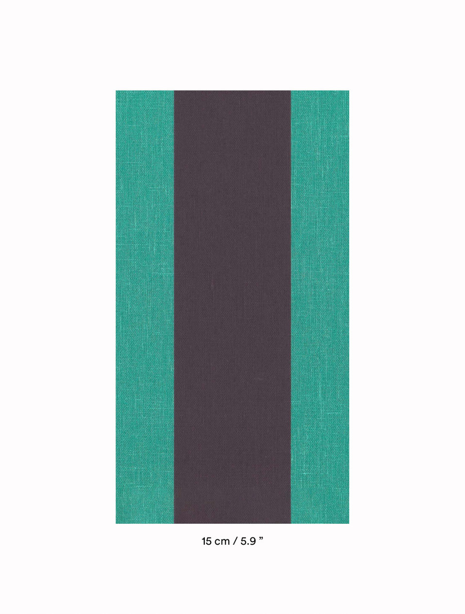 This premium wallcovering, made from 100% pure linen, merges natural sophistication with graphic boldness. The light, open weave adds delicate texture to walls, while the wide, bi-coloured digitally printed stripes—evoking sporty uniforms—bring vibrant energy to interiors.