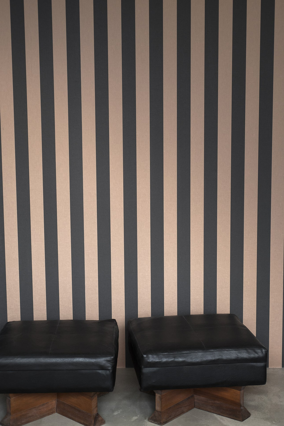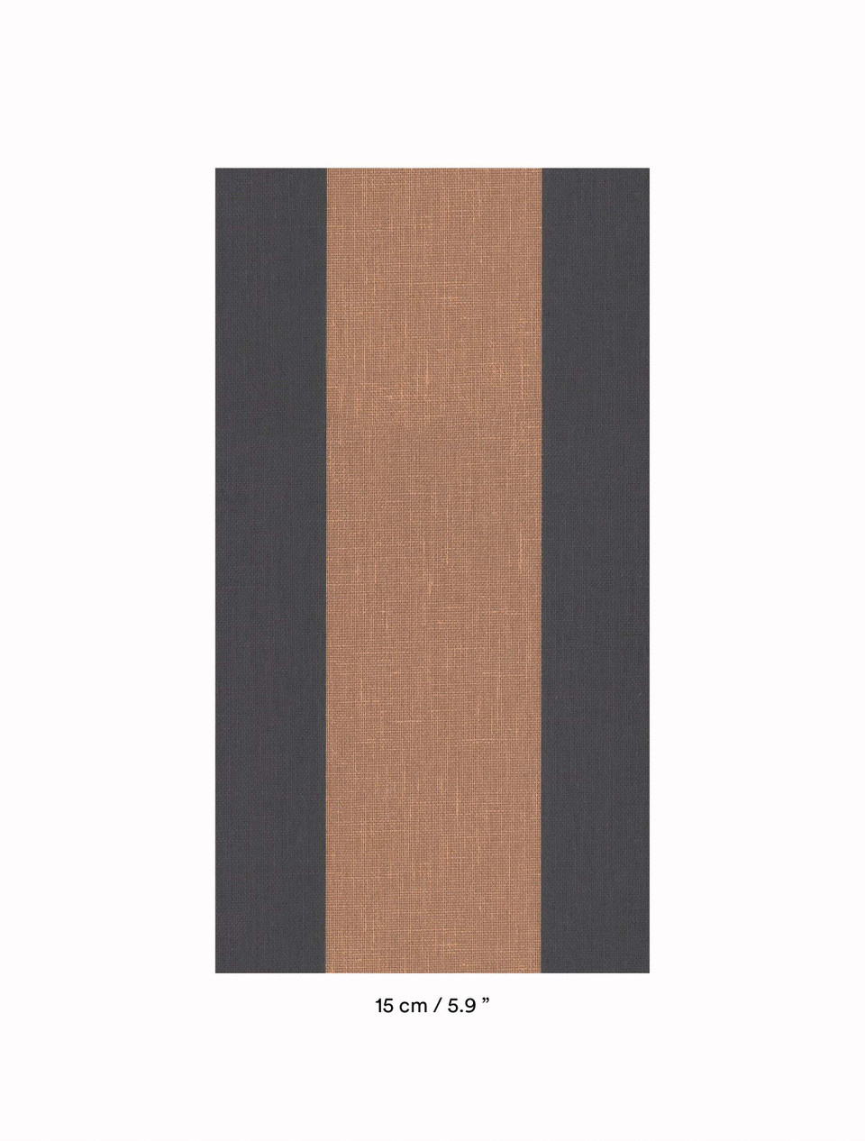 Luxurious linen wallcovering with an open weave and bold, digitally printed sporty stripes. Light, lively, and full of texture. Made in Italy.